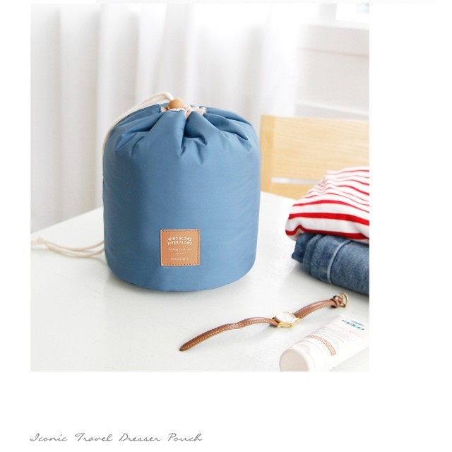 產品名稱:新款韓版優雅圓筒化妝包洗漱包大容量束口旅行收納袋抽繩收納包