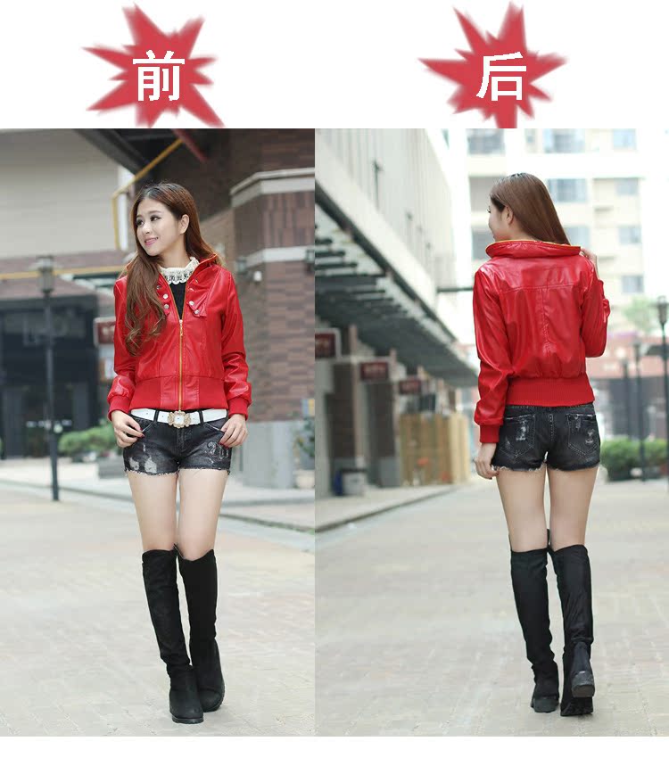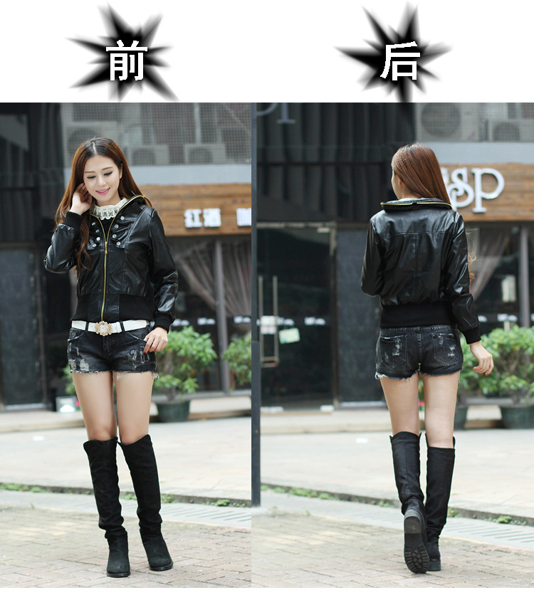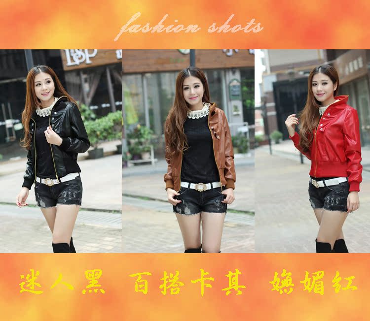 2015海寧秋冬新款 修身顯瘦長袖立領不連帽無腰帶外套 女式PU皮衣