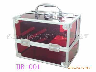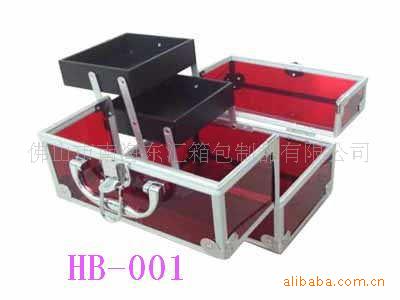 鋁壓克力化妝箱, 直角壓克力化妝箱,采用紅色透明壓克力,鋁合金邊框,采用雙開形式,內有兩個內盒,尺寸和壓克力顏色可根據需要定做.