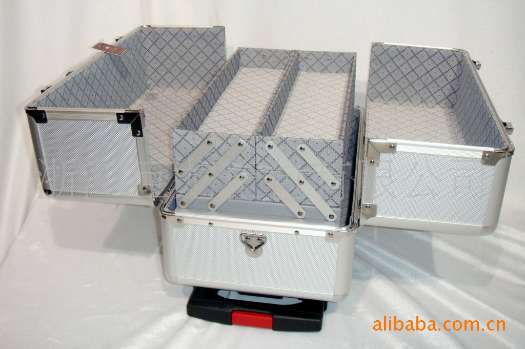 該款工具箱為鋁條邊框,PVC麵料加密度板,內襯為EVA洗槽內盒。箱子尺寸不限,可根據客戶具體要求進行生產。深受廣大愛客戶的喜愛。