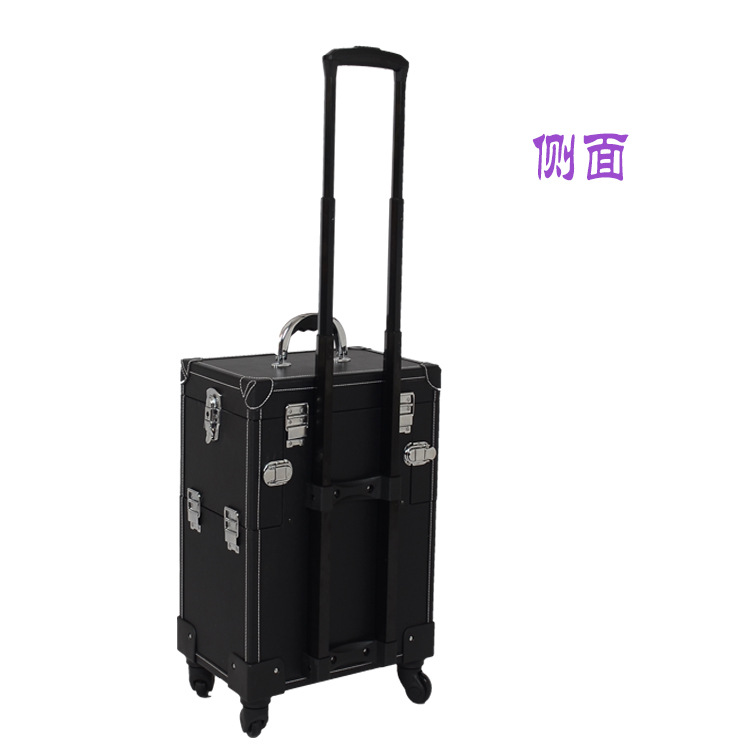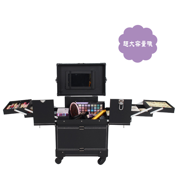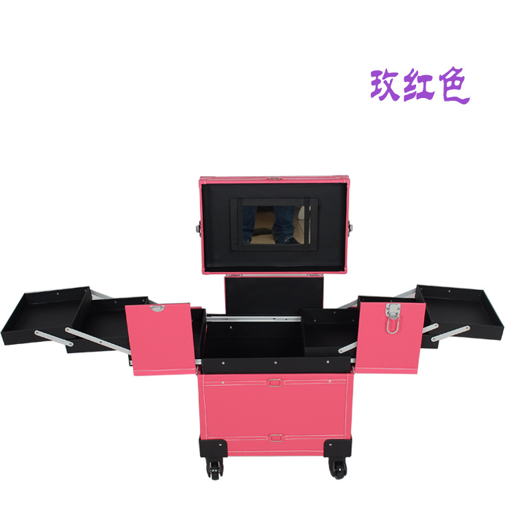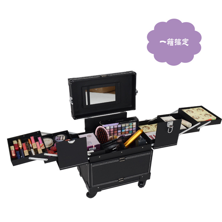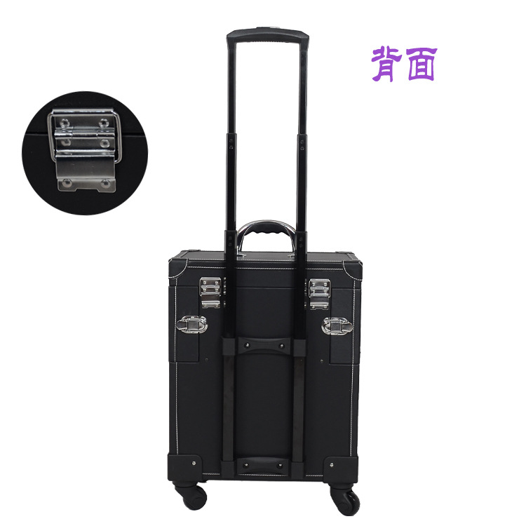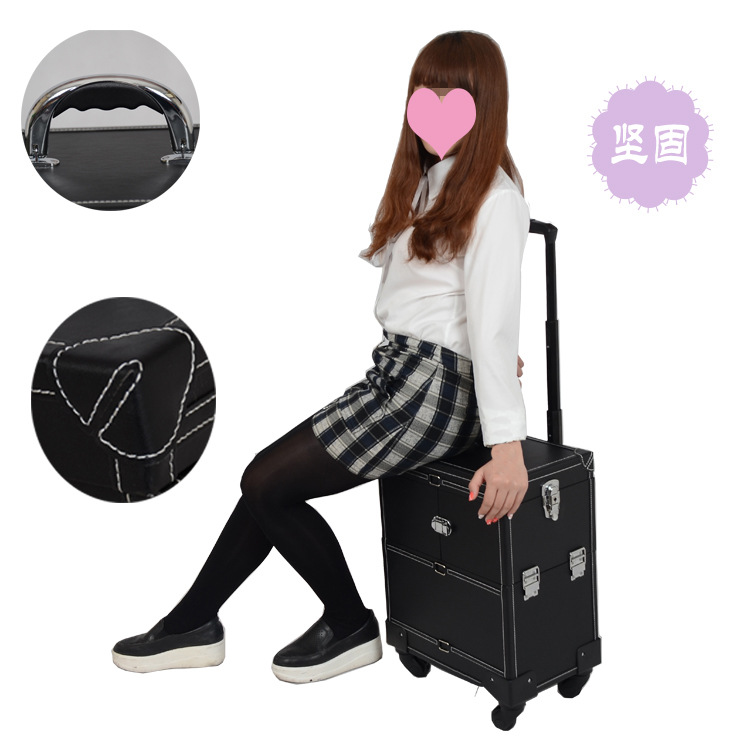專業性創新設計出全新的多功能專業化妝箱,優雅精湛的弧線型工藝,優質PU麵料,鋁合金拉桿,靜音萬向輪.,多層折疊,大容量靈活空間,雙層雙開托盤,輕松整理繁多彩妝品,美觀大方,不浪費一寸空間。高性價比,20年老廠專業生產,質量管理嚴格,出廠檢驗,發貨查驗,物超所值,讓您買的放心,用得開心。