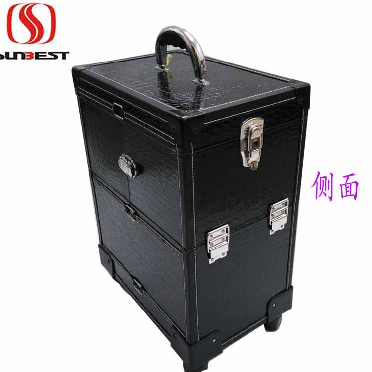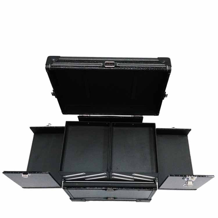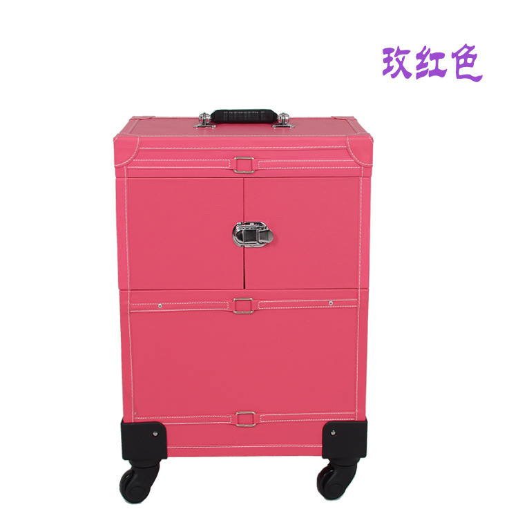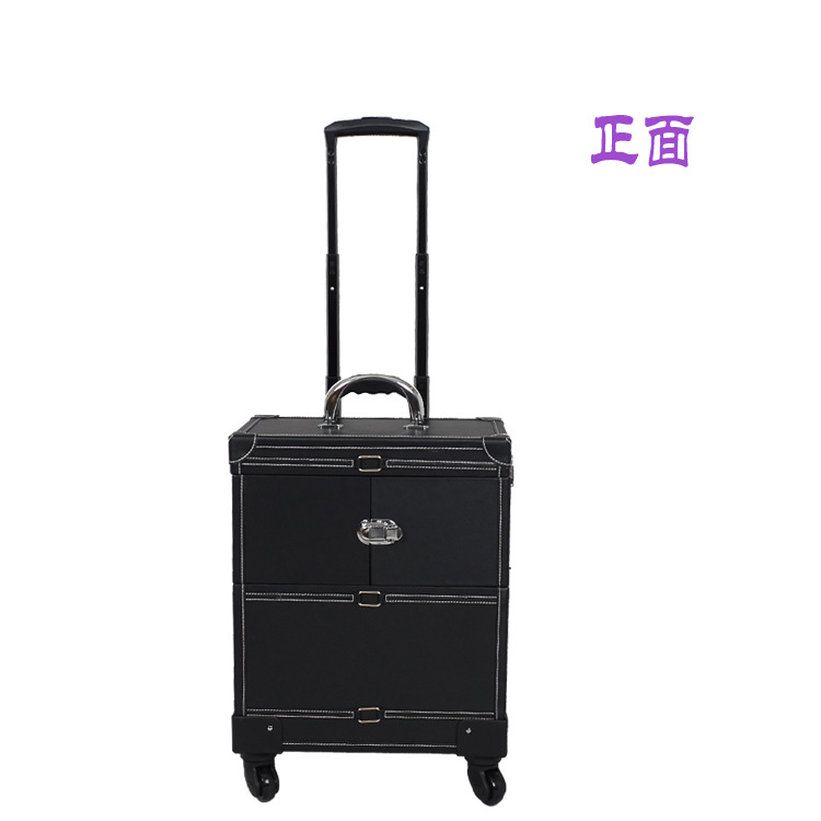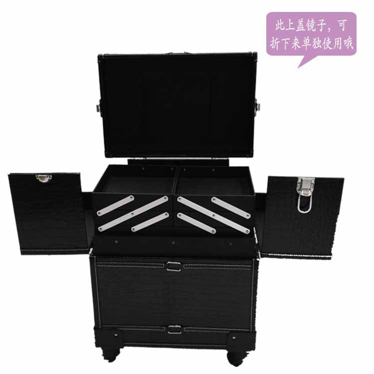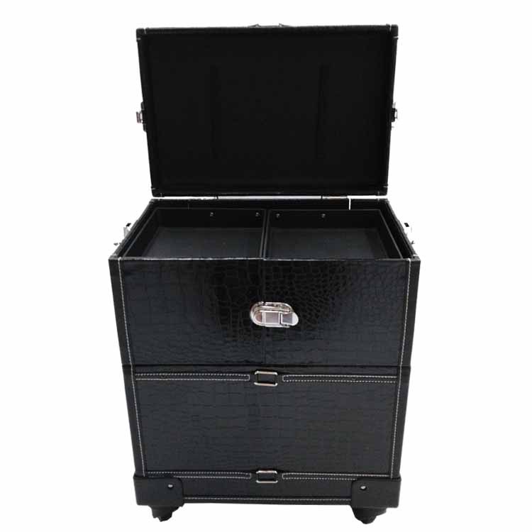 專業性創新設計出全新的多功能專業化妝箱,優雅精湛的弧線型工藝,優質PU麵料,鋁合金拉桿,靜音萬向輪.,多層折疊,大容量靈活空間,雙層雙開托盤,輕松整理繁多彩妝品,美觀大方,不浪費一寸空間。高性價比,20年老廠專業生產,質量管理嚴格,出廠檢驗,發貨查驗,物超所值,讓您買的放心,用得開心。
