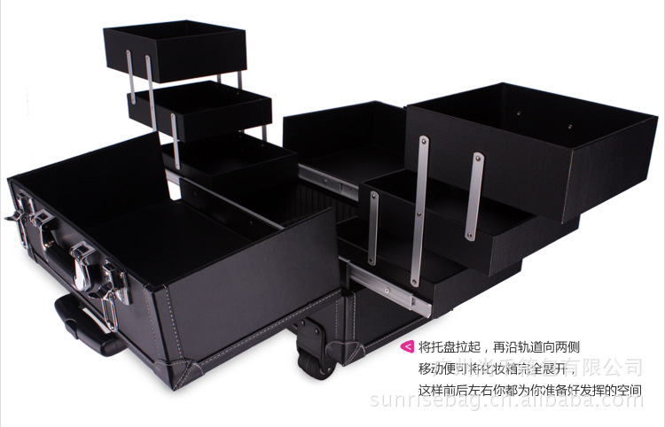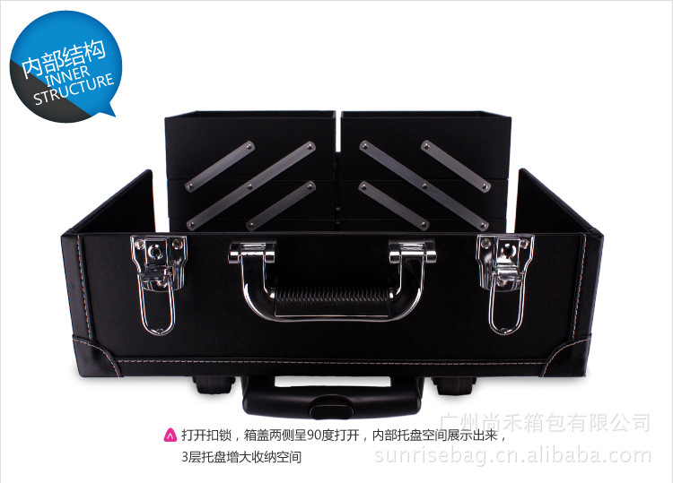 正品sunrise多層大容量可手提拉桿化妝箱包JL409T-B