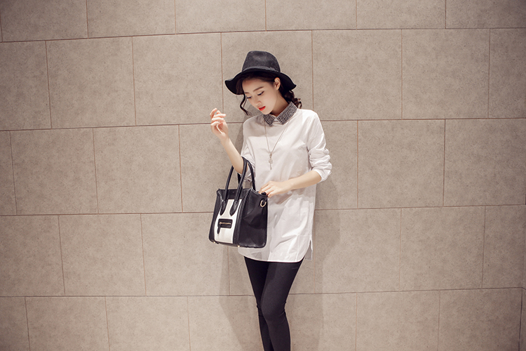 歐洲站女寬松純棉百搭白襯衣韓版中長款娃娃領長袖襯衫
