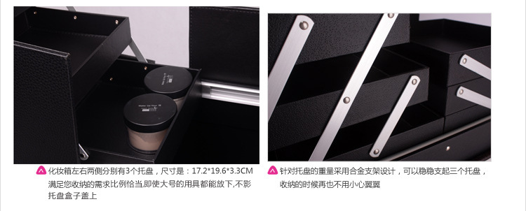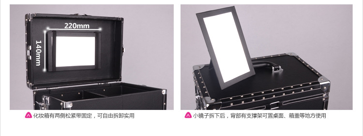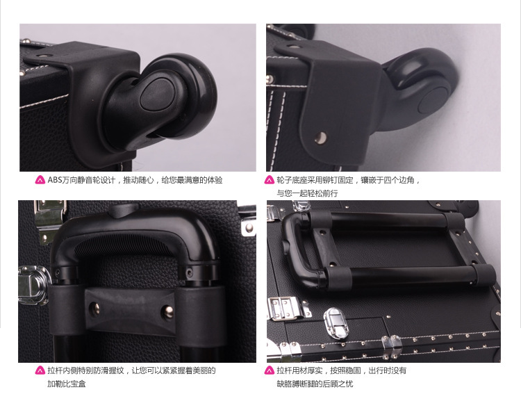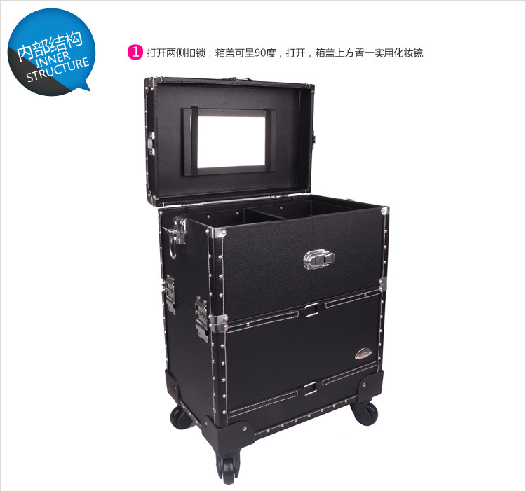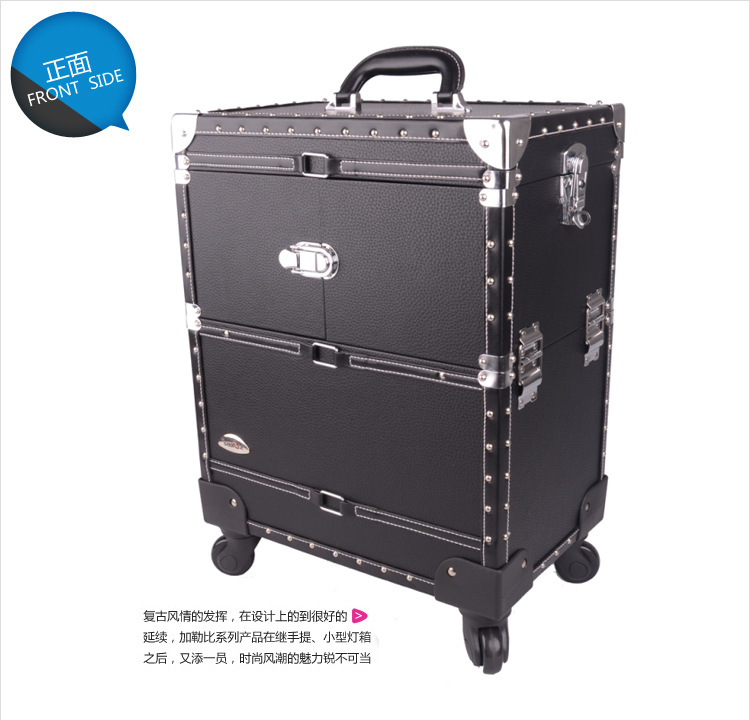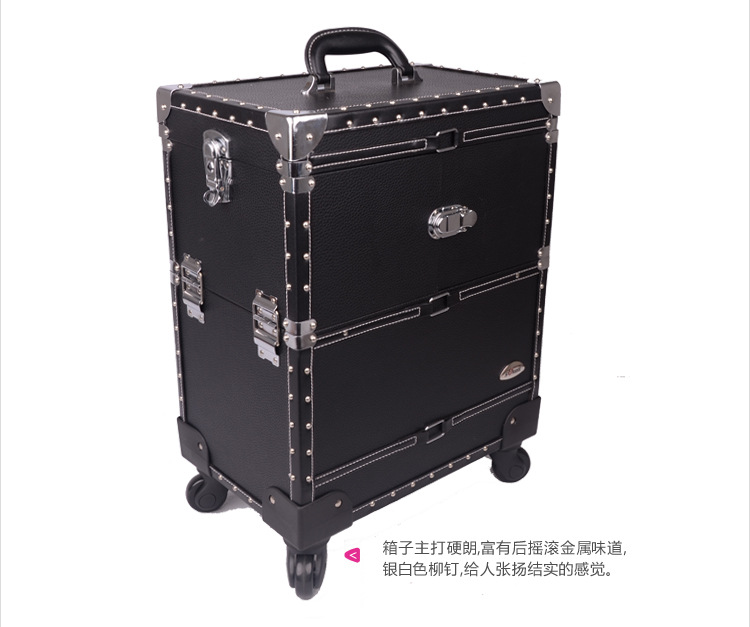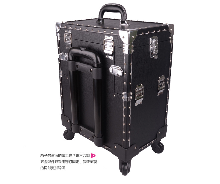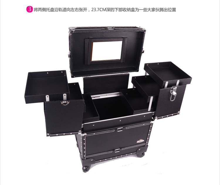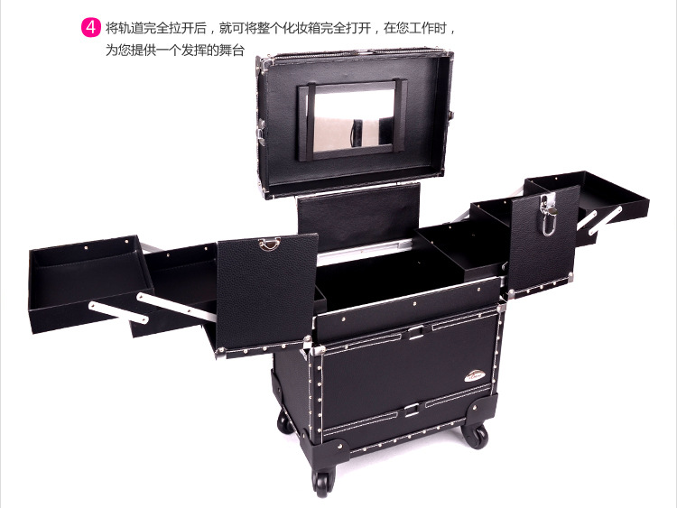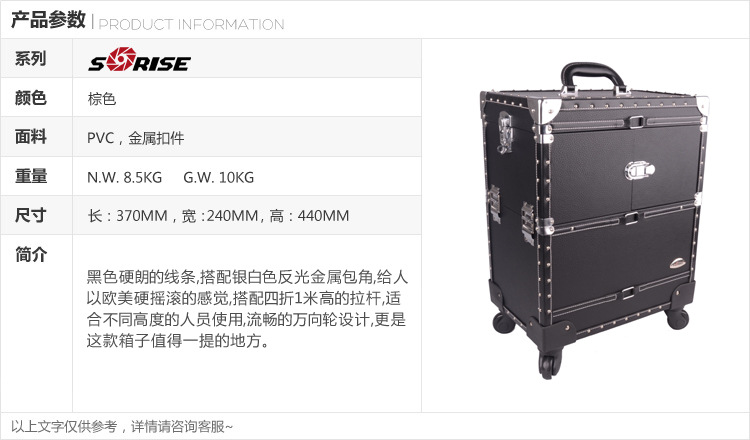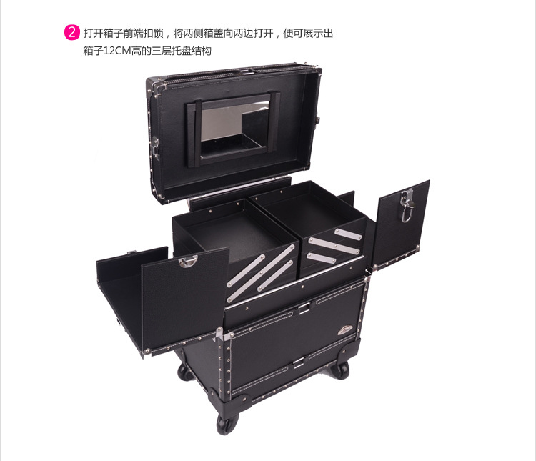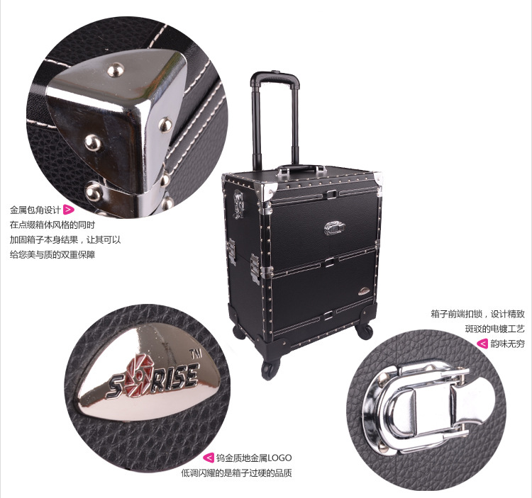 正品SUNRISE黑色多層專業拉桿化妝箱新款帶萬向輪