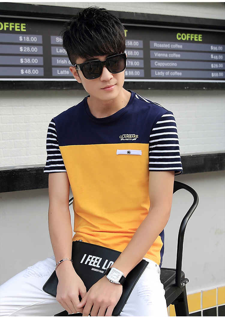 一件代發男士韓版t恤修身打底衫青年休閒體恤時尚流行潮男裝