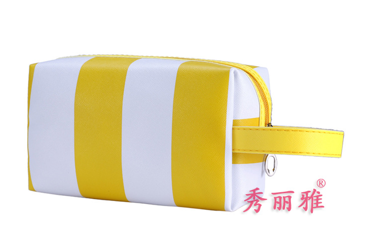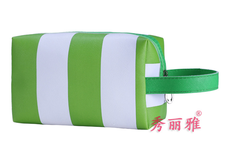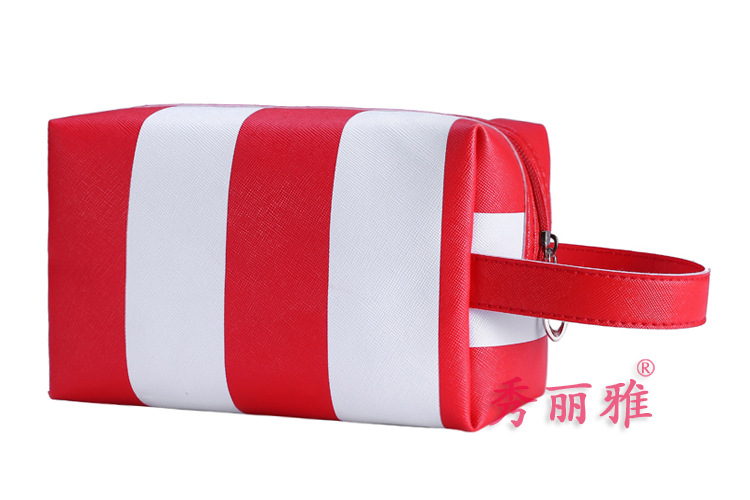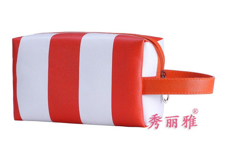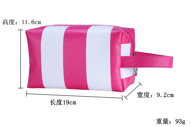 產品介紹 小身材大容量手提收納包 pvc印花枕頭型手拿精簡大條紋化妝包