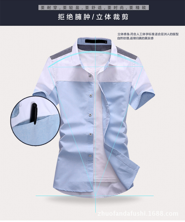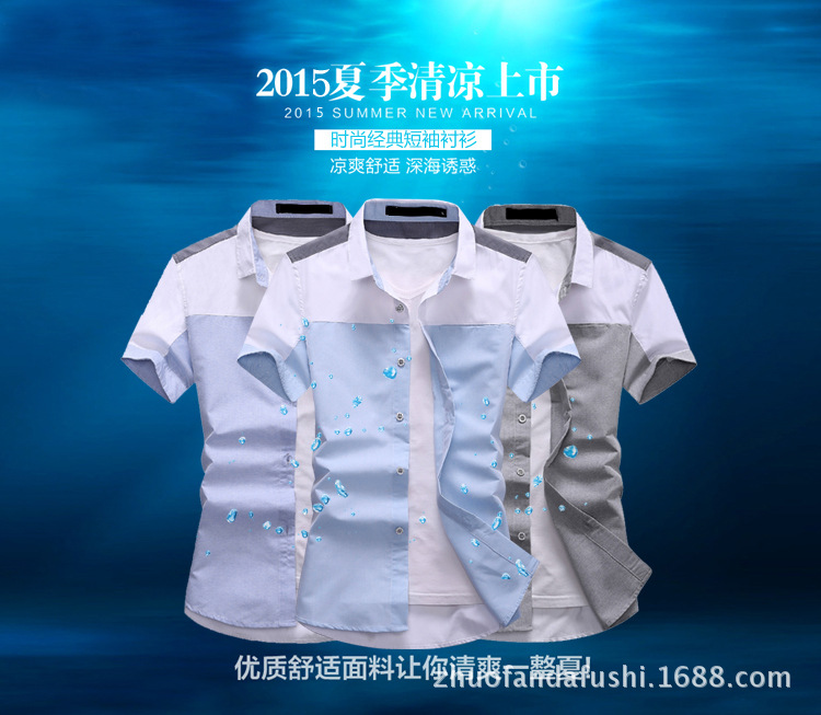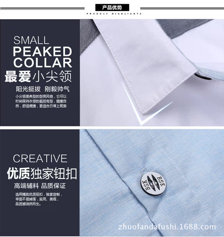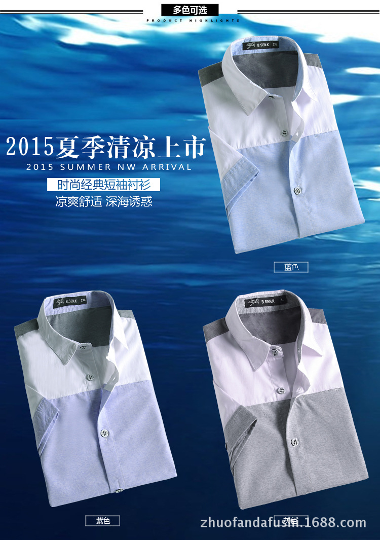 2016新款夏季男式襯衫短袖襯衫男韓版修身純棉男裝免燙休閒襯衣潮