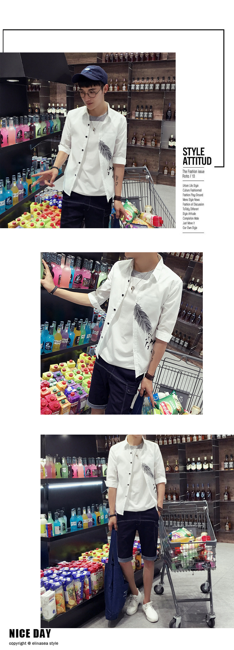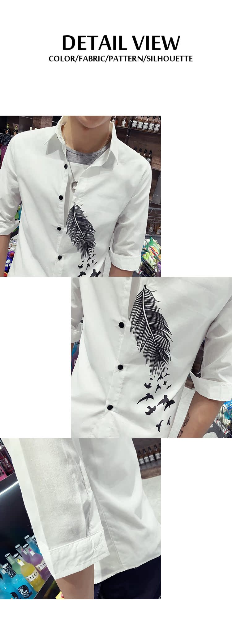 春秋襯衫男七分袖袖英文襯衣印花襯衫男韓版修身休閒男裝潮