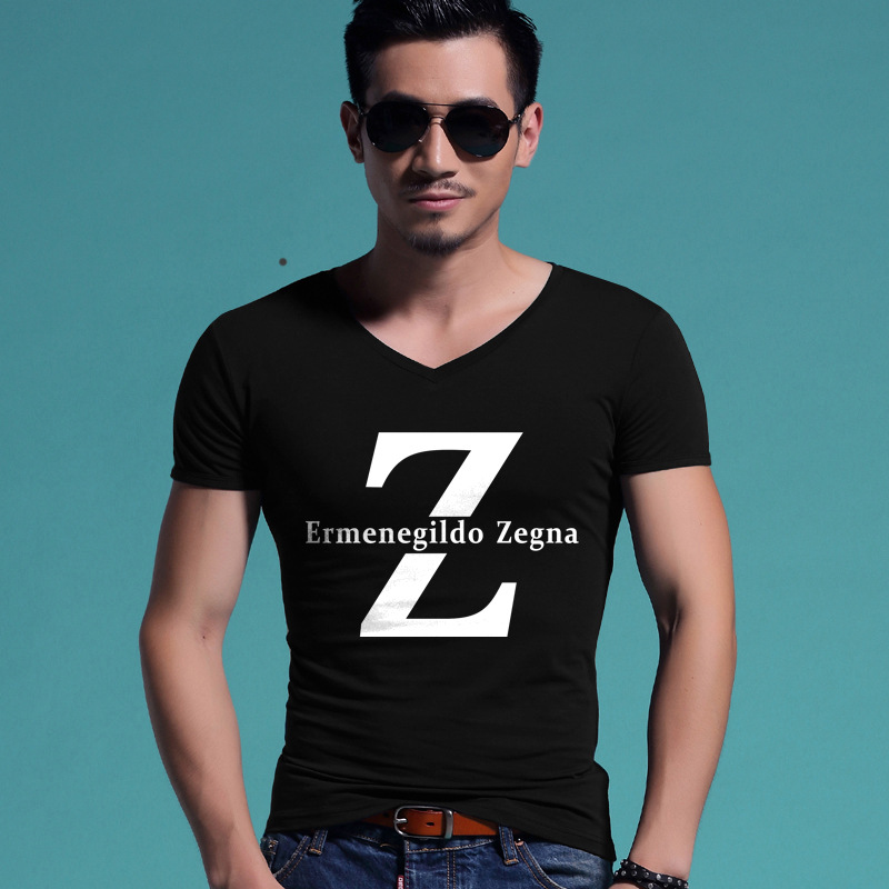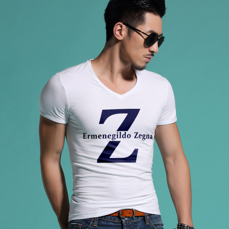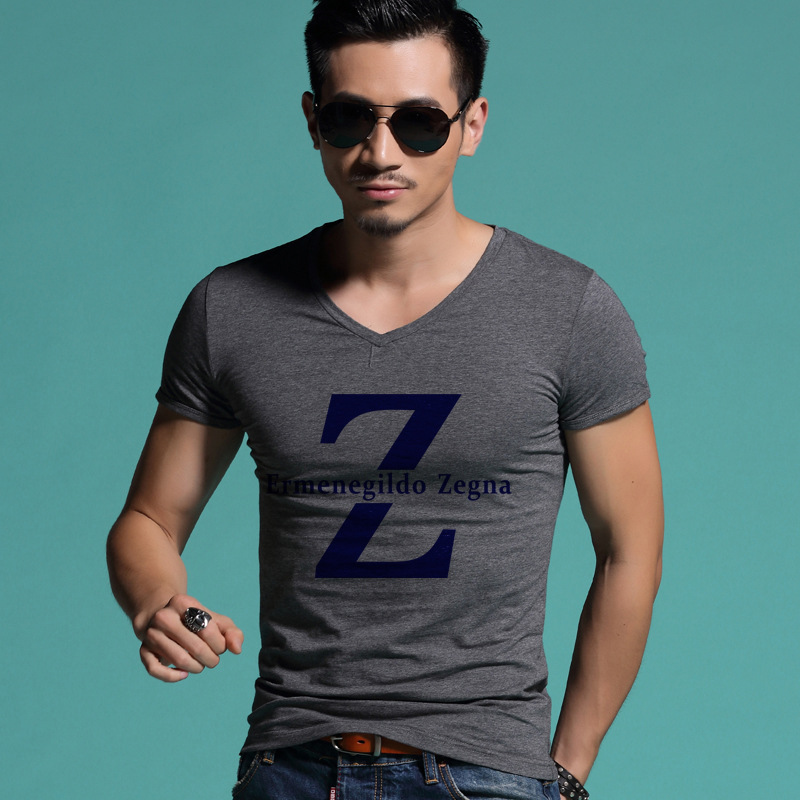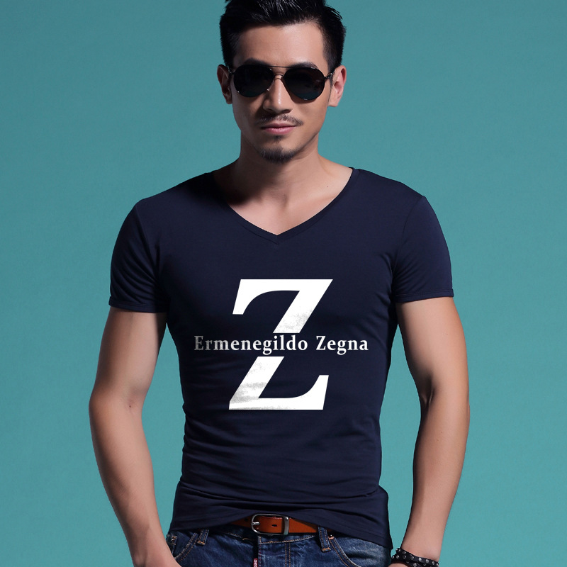 夏季t恤男短袖 V領修身半袖萊卡體恤男士短袖T恤打底衫純棉男裝潮