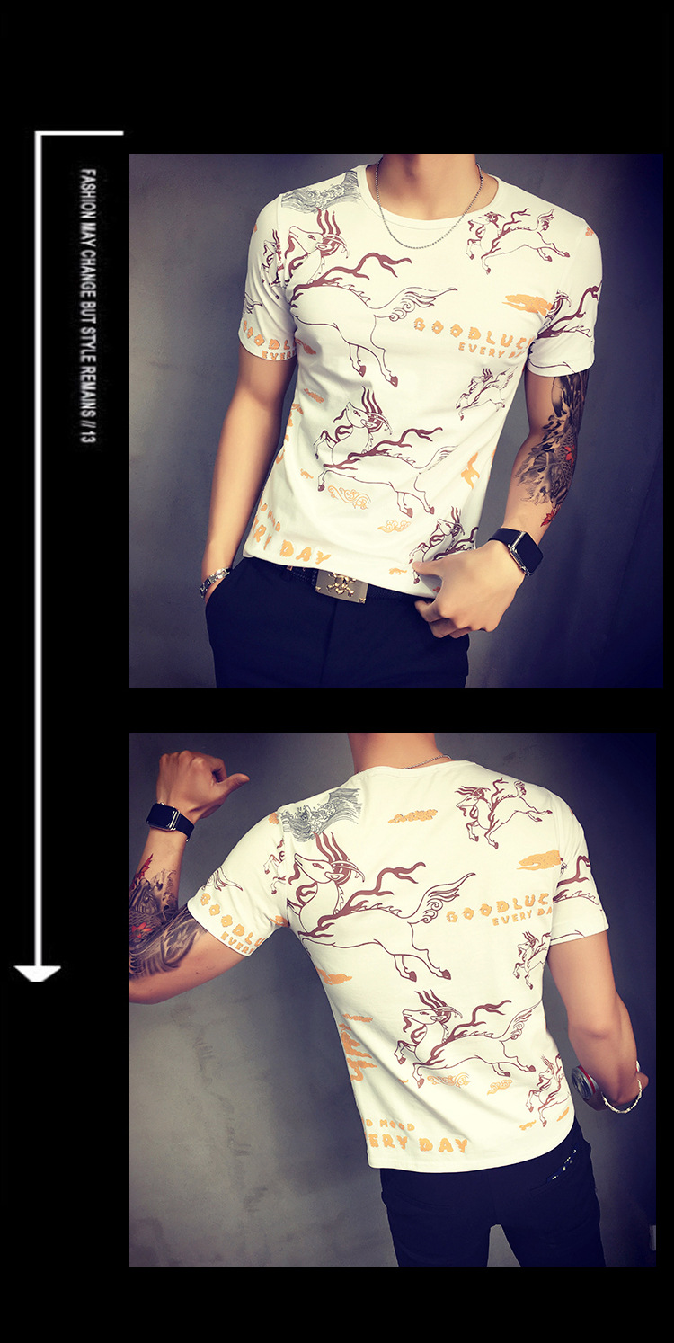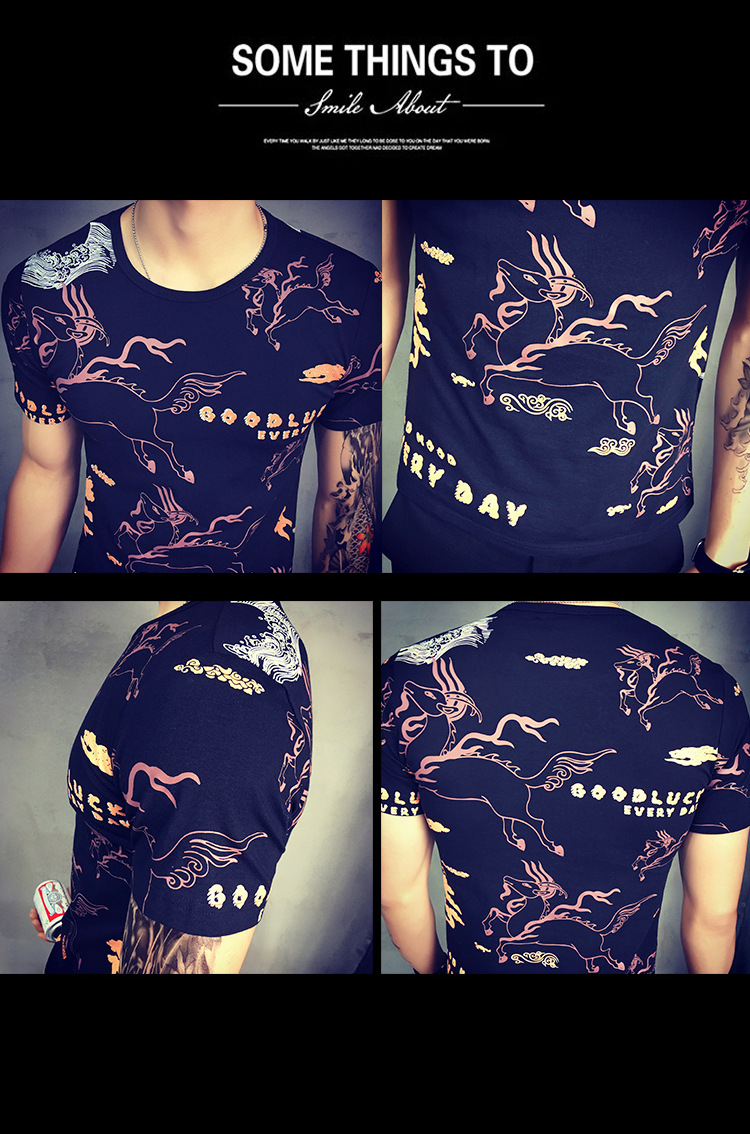 2016夏季新款時尚個性韓版型男短袖T恤男式休閒印花T恤男一件代發
