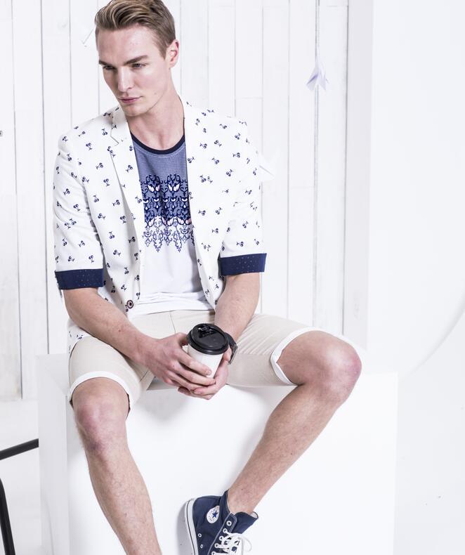 胸前一粒扣開襟,衣身麵料上船錨logo搭配,完美詮釋著時尚潮流的風格~