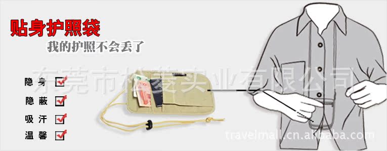 1、兩個拉鏈隔袋設計,可收納各種貴重物品:錢幣,信用卡 ,護照本、駕駛證等旅行文件.