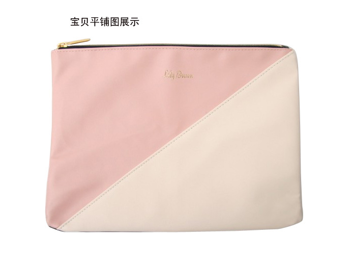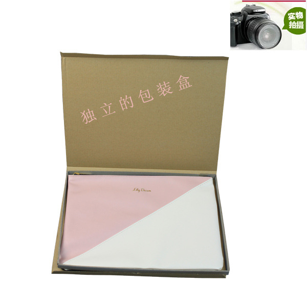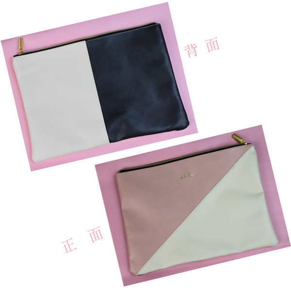 產品名稱 新款韓版精美撞色拼接手拿包 品 牌 Fuyuan 貨 號 FY-STB-001 顏 色 粉色 ,其它色可定製 材 質 PU皮 尺 寸 30*22 CM 結 構 無內袋 備 註 定製品 本公司接受各種定製