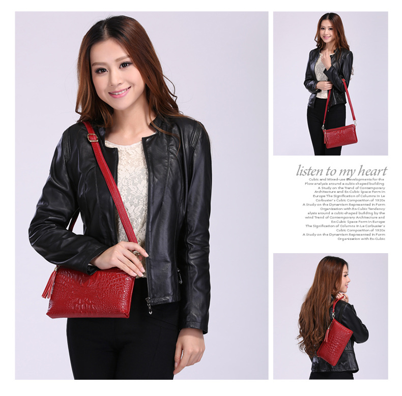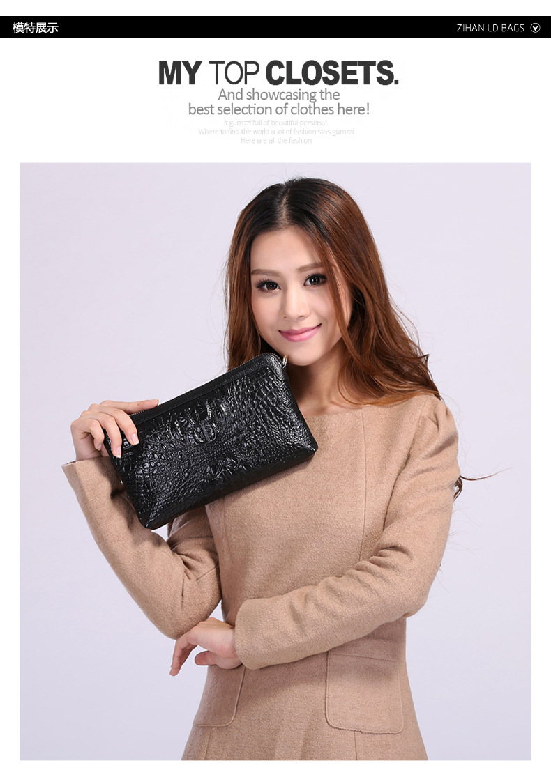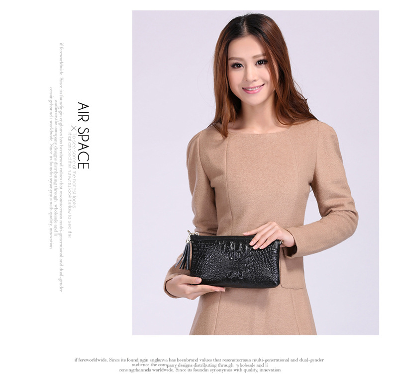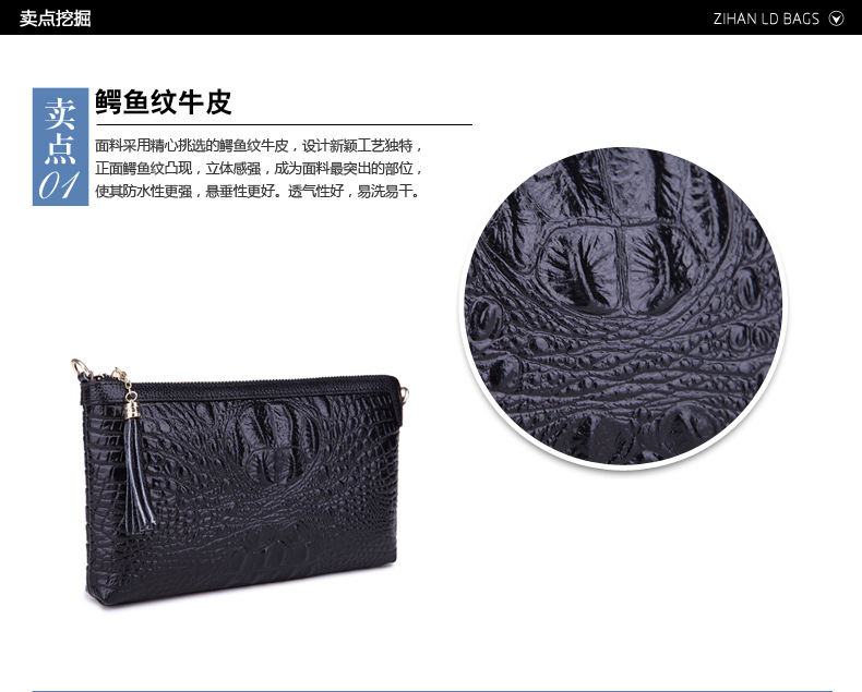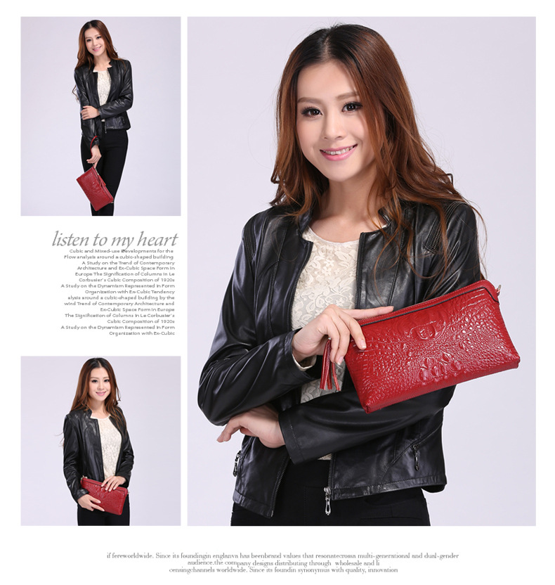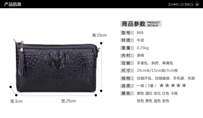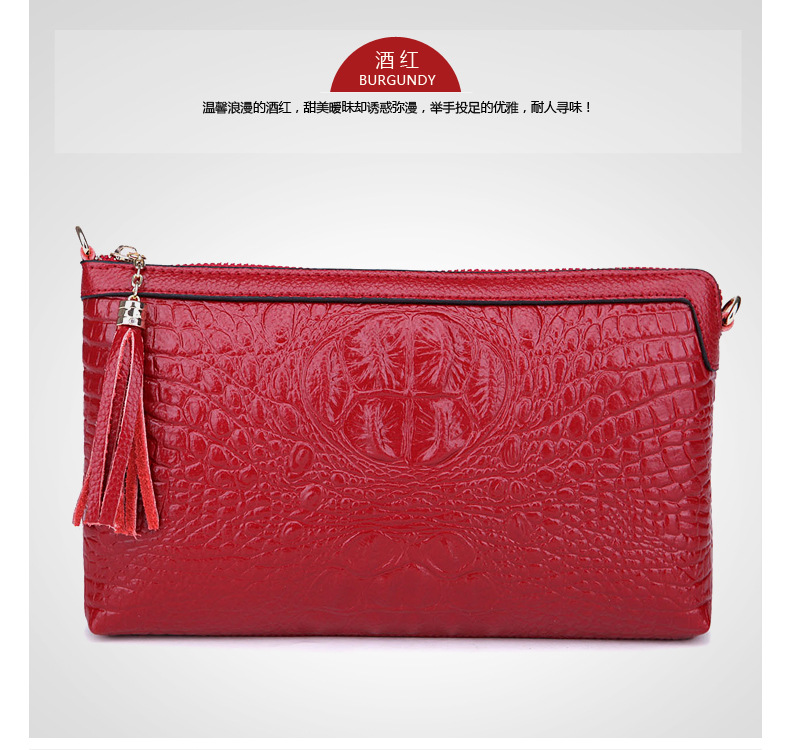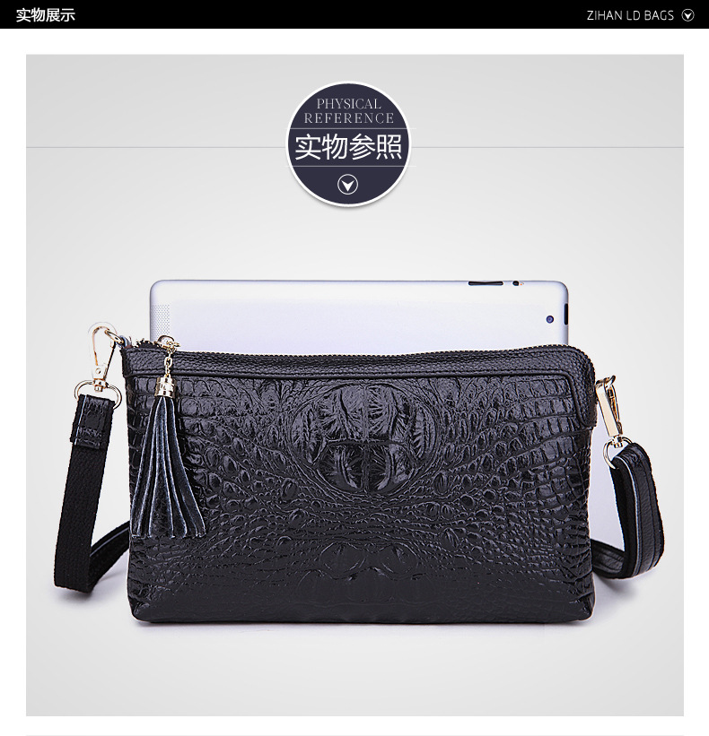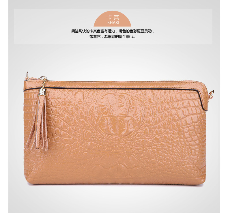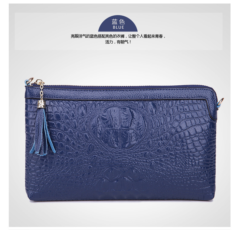 【功能】可平放百元大鈔,可放手機、零錢、票據、銀行卡、鑰匙等,隨身攜帶還可以放下小袋紙巾,簡單化妝用品等大容量空間,可滿足茶前飯後散步、逛街,宴會、約會等休閒之用,既可手拿、亦可單肩背、更可斜挎,一款女士多用途多功能不可多得的時尚休閒潮品。