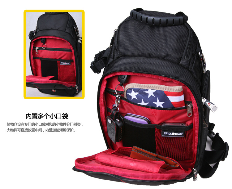 品牌:SWISSGEAR 名稱:防水透氣相機包 筆記本雙肩包 顏色:黑色 款號:SA-0372C 麵料:防潑水、耐撕裂、防刀刮1680D麵料