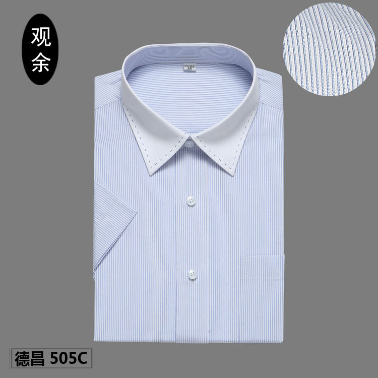 男士條紋撞色領短袖襯衫商務休閒修身職業襯衣男式襯衫工作服_男式條紋襯衫_男裝_服裝_貨源_批發一路發