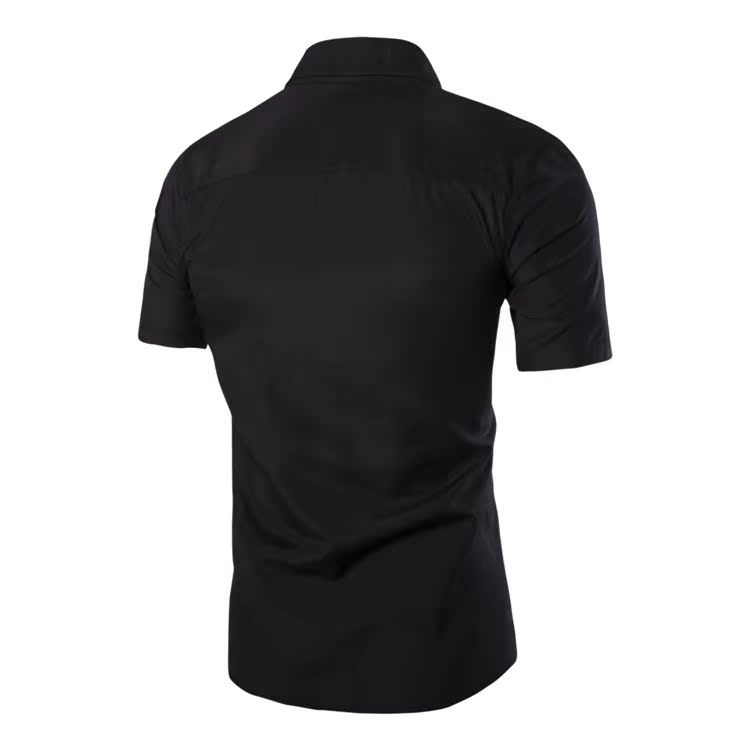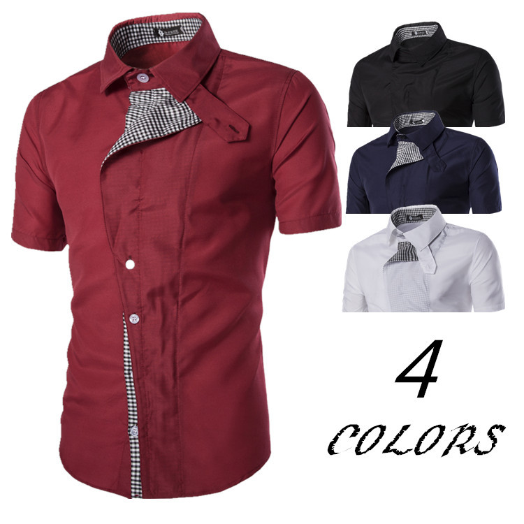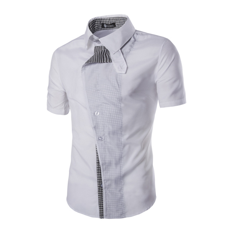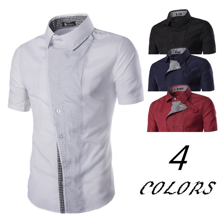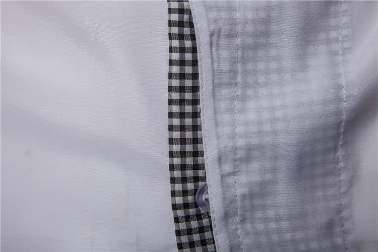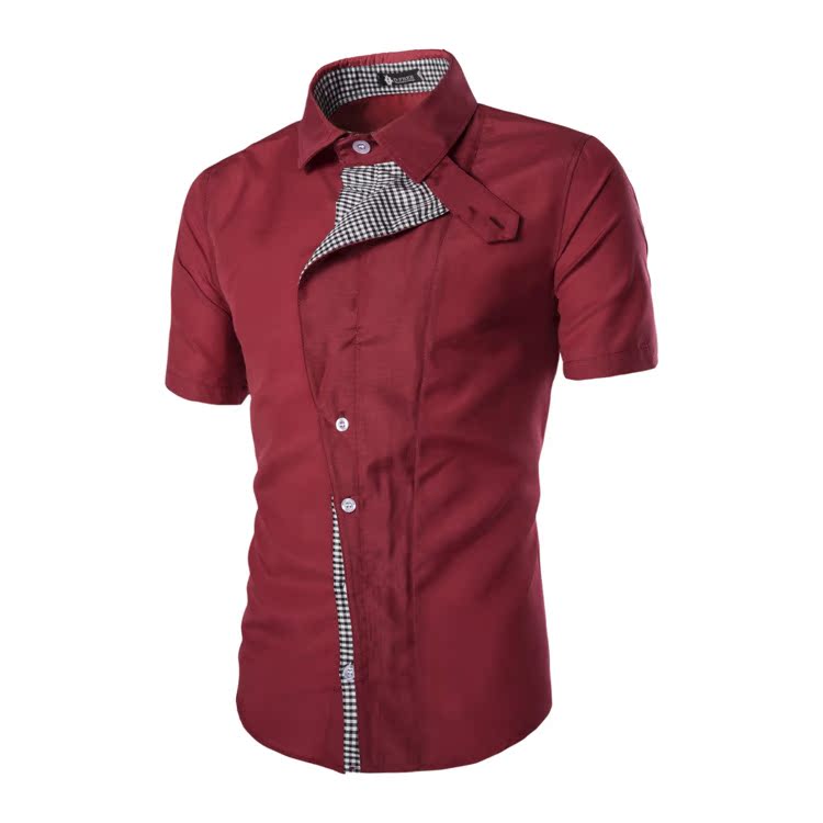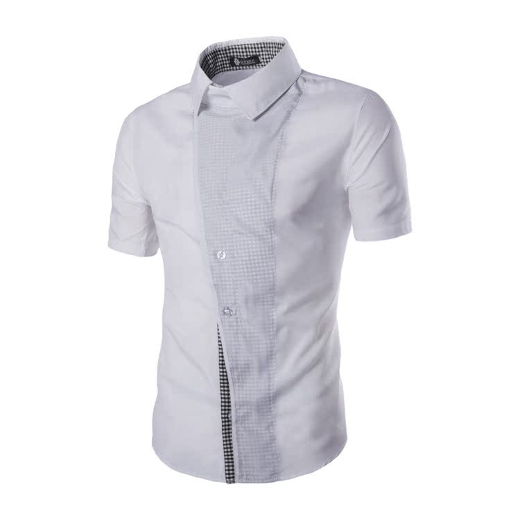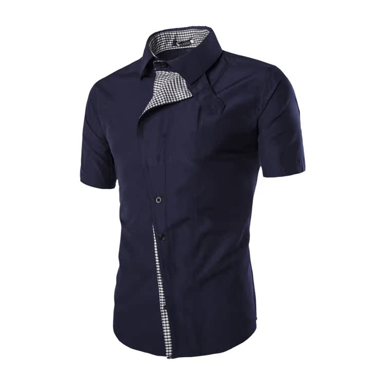 2016速賣通wish外貿爆款男裝門襟鑲格子個性短袖襯衫男式襯衫