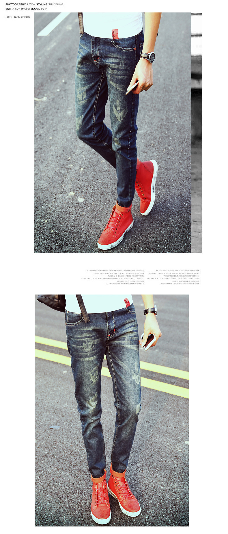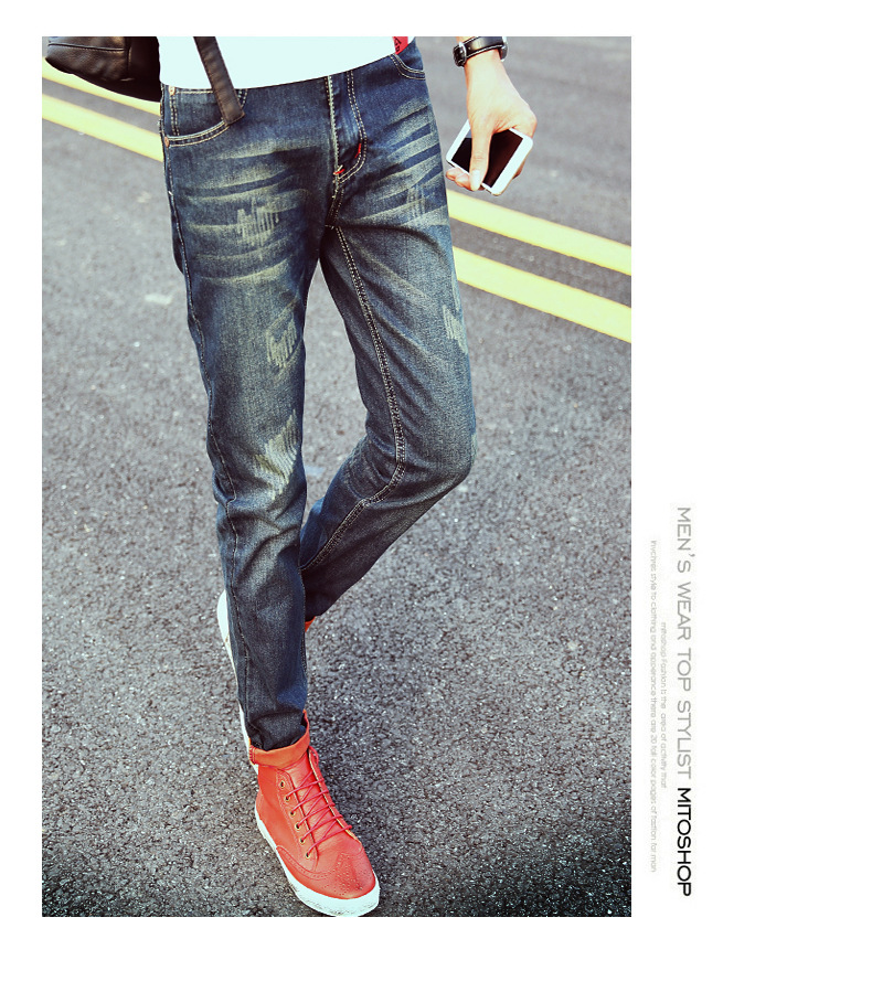 熱賣2016新款男士牛仔褲 韓版修身磨破小腳長褲子潮男直筒褲大碼