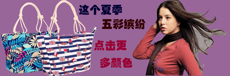 此款包包主要以印花帆佈和棉繩手挽作為流行元素,加之以大氣作為理念,整個包包集大方、休閒、時尚一為身。現在市場反饋火爆,網路以及實體都很熱銷,廠傢直接生產現貨批發,貨源充足,質量和售後得以保障。