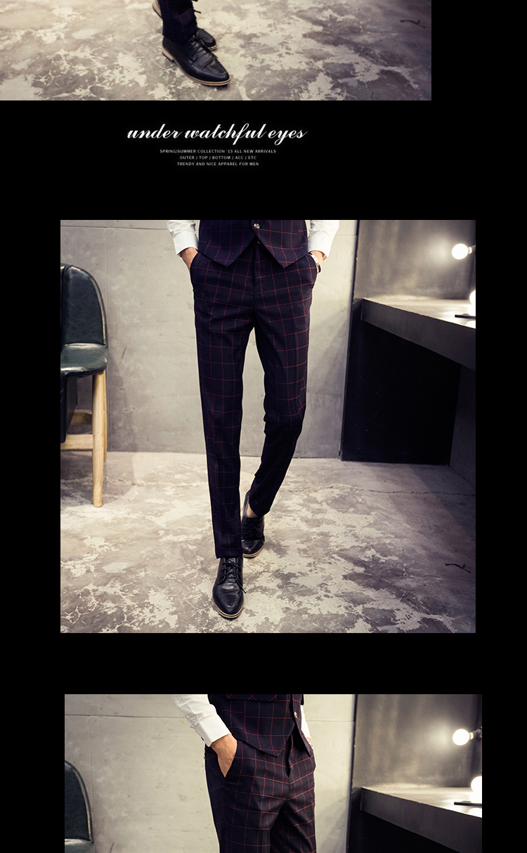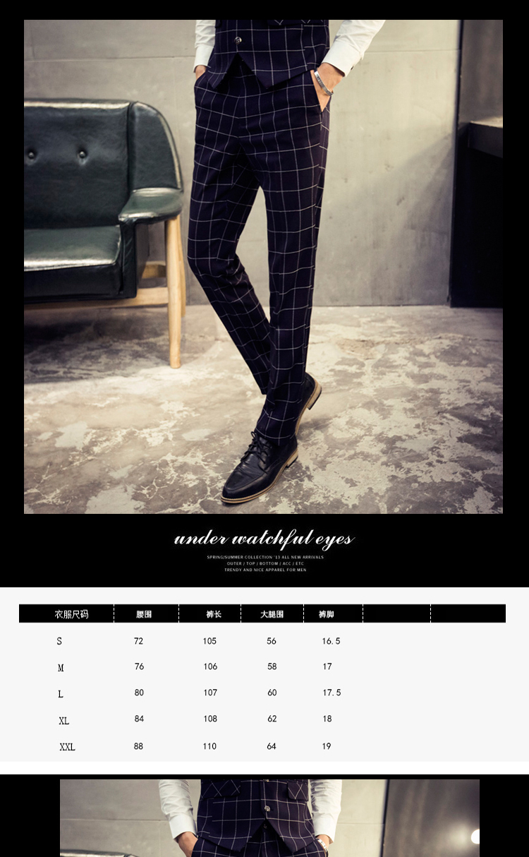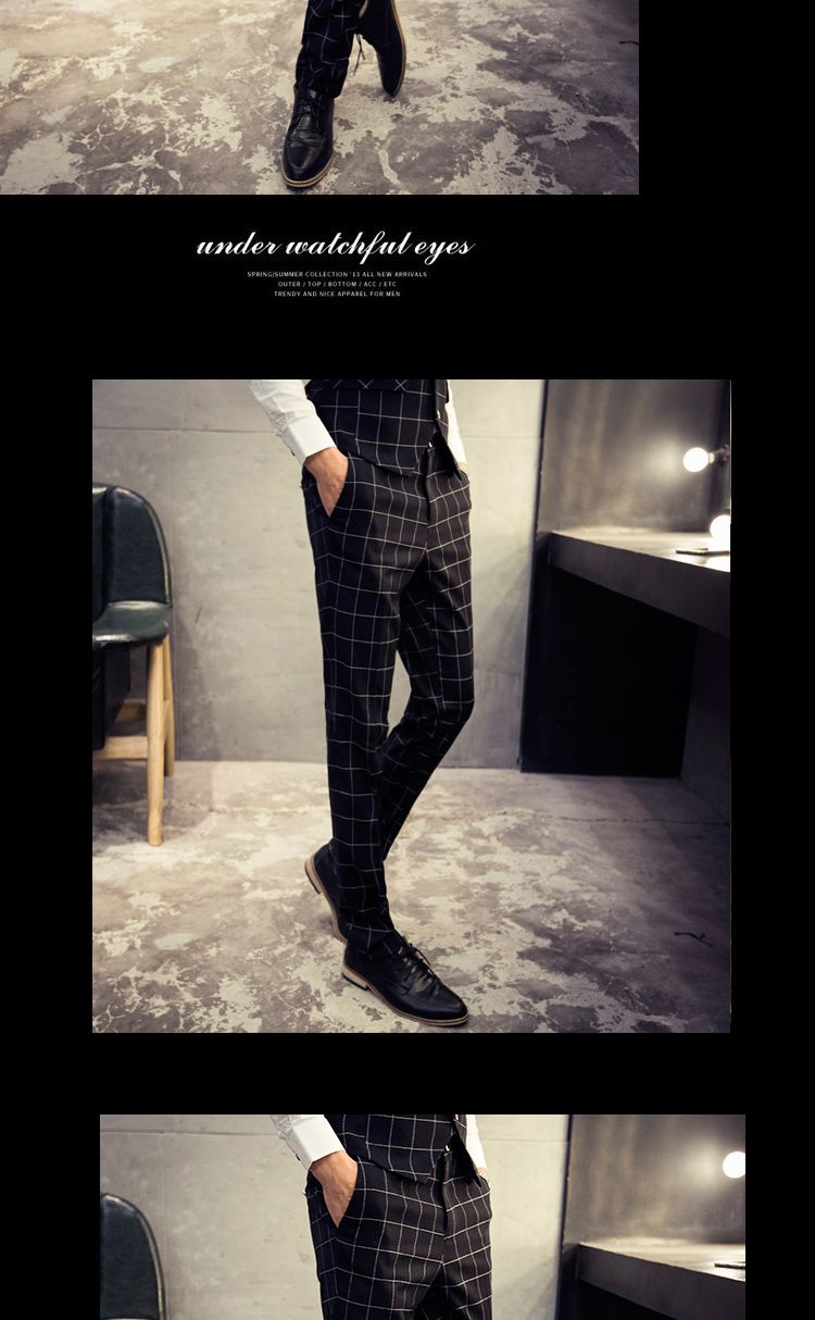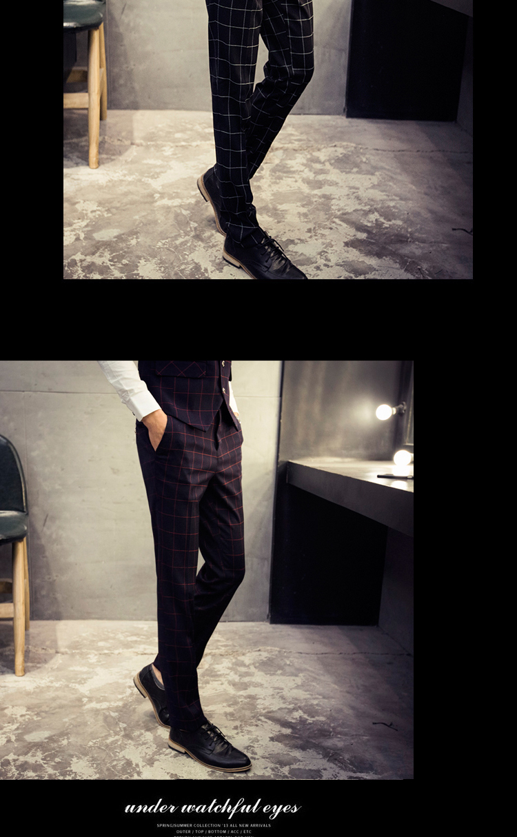 2016春秋韓版修身男士西裝褲 時尚直筒休閒褲男格子西裝褲 外貿批發
