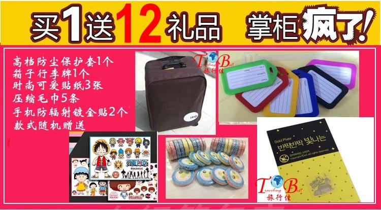 12禮品套餐:1箱套3貼紙1行李牌5毛巾1輻射貼
