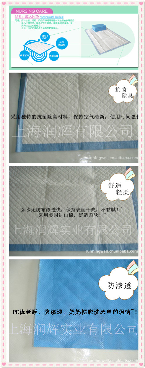 advantage:In bed for long, urine is not convenient, high water absorption, this product can be up to 1000 ml water, prevent leakage, to cut the time