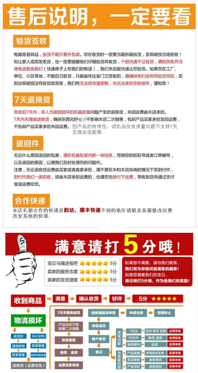收貨時請您註意觀察商品包裝外觀是否存在明顯大麵積破損、浸濕等情況,如有請向快遞員拒收商品並立即聯系我們在線客服或致電:400 662 8990;包裝確認無誤可先開箱驗貨,商品外觀無誤後再簽收,隨後您可根據商品說明書試用商品,試用後如出現商品問題或使用問題請與收貨後7天內聯系我們,以免超過退換貨期限。