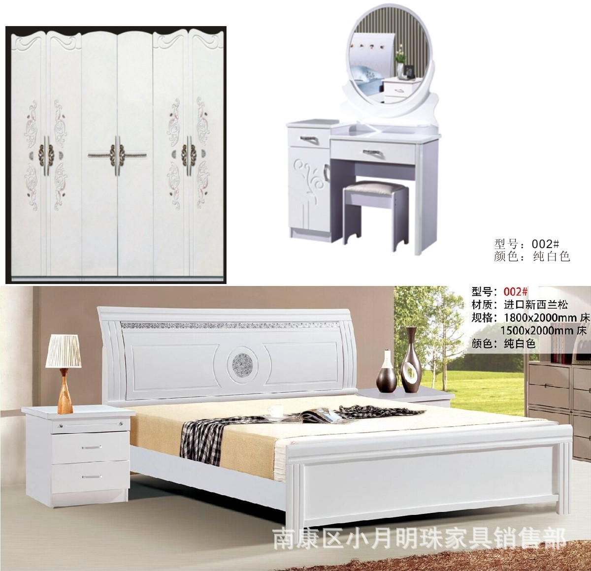 親:一套包1.8米大床,兩個床頭櫃,一個六門衣櫃,一個妝臺和一個妝凳! 廠價直銷!!!