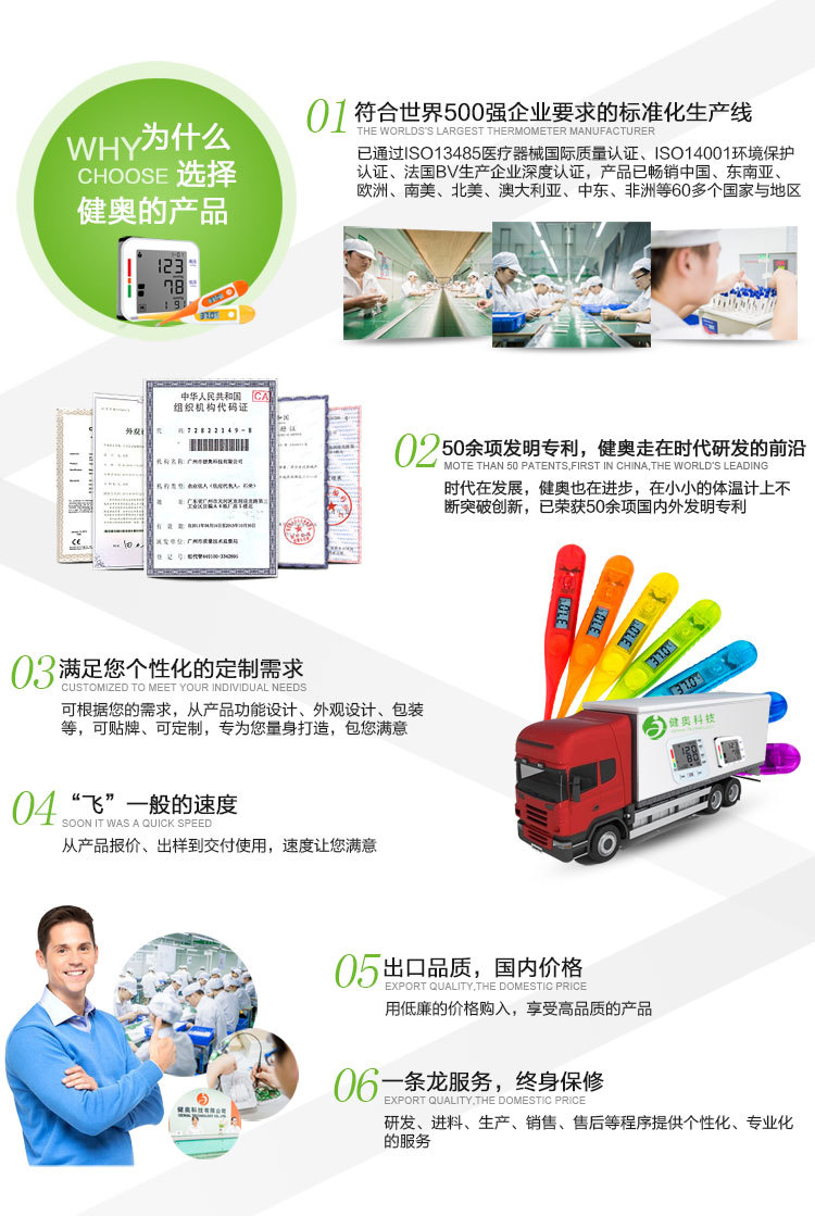 壓計、電子體溫計、治療機、拔罐器,公司已經獲得瞭ISO13485醫療國際質量系,