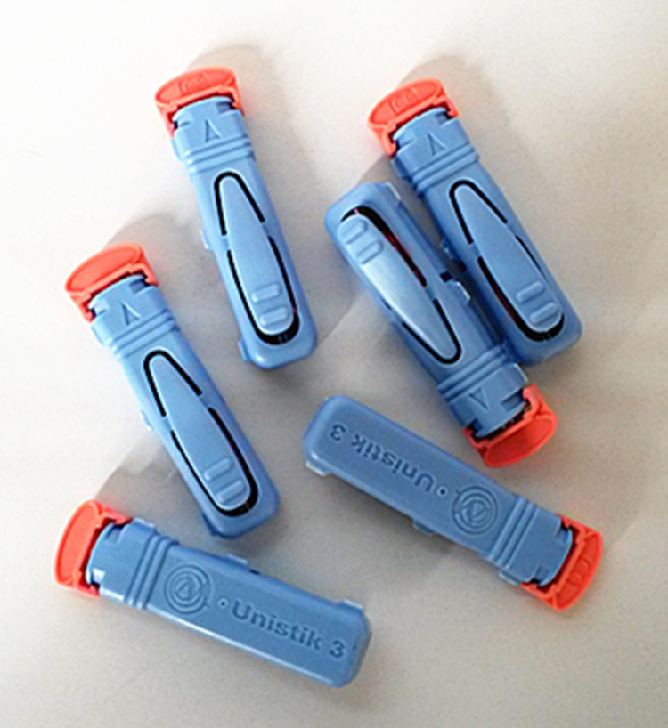 Unistik3采血器分為四種顏色:紫色、黃色、橙色、藍色
