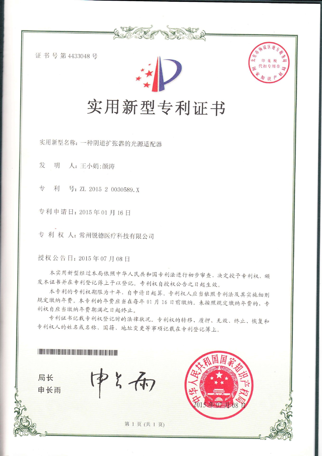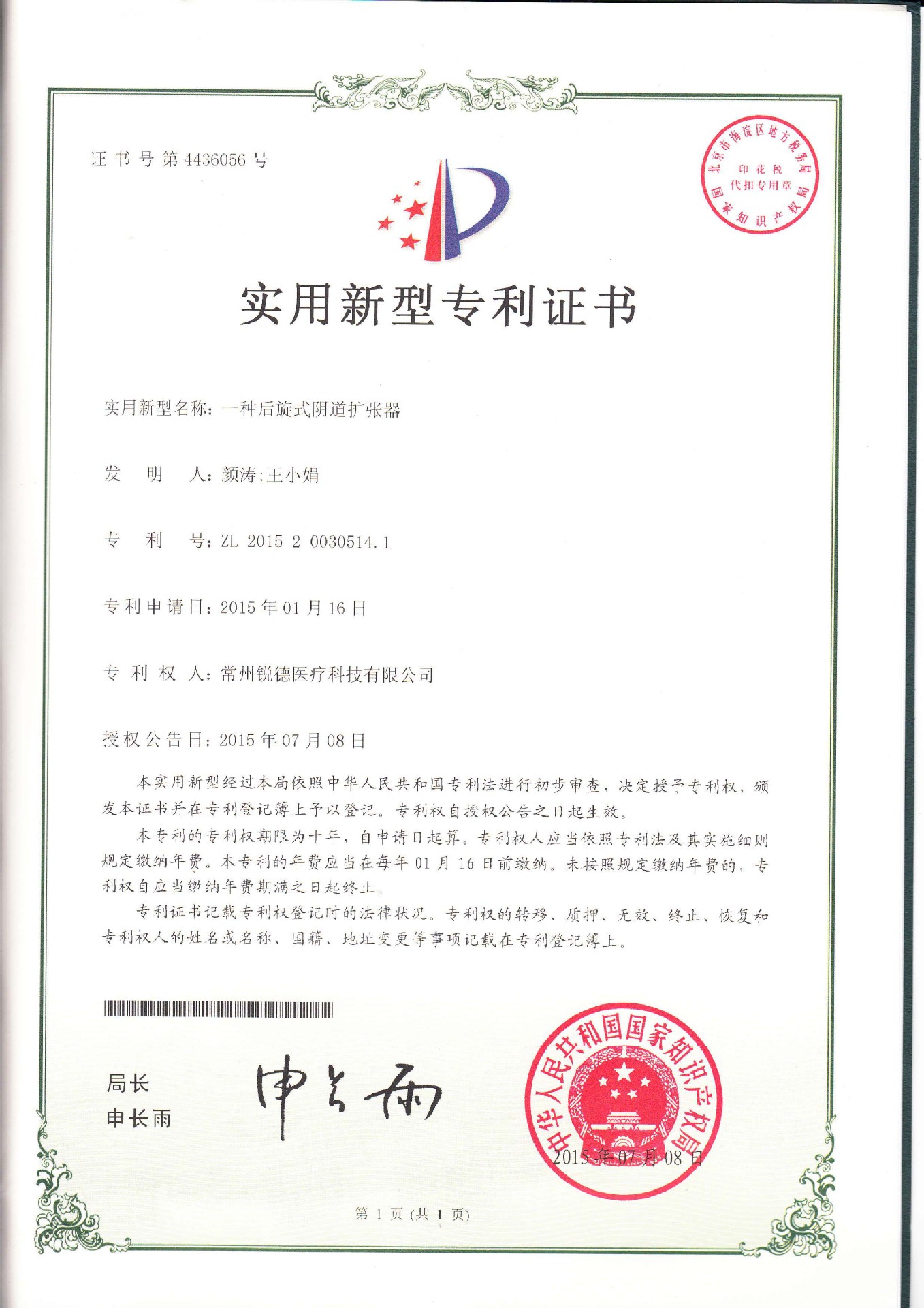 - 常州銳德醫療科技有限公司自成立以來,充分堅持自身優勢資源,借鑒國內外同類產品優勢的基礎上、並結合臨床反饋的實際需要研發瞭完全擁有自主知識產權的:“一次性使用無菌(帶光源)陰道擴張器”,在獲得多項專利的同時,引進確切有效的“新技術”、“新思維”、“新概念”、“新應用”作為公司發展的核心價值觀;在推廣專利應用技術的同時,帶動行業中全新的重大革命,替補瞭原始產品的技術空白,成為一次性使用無菌(帶光源)陰道擴張器領域的領導者。