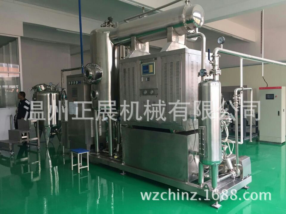 此產品為我們公司按國外最新技術,根據客戶要求自行研發之製造。低溫濃縮機組的蒸發溫度為25-30℃,這是世界上商業領域應用最低的溫度。在此溫度下對熱敏感產品進行強製真空濃縮,將產品中的水分或有機溶劑蒸發掉。由於采用25-30℃蒸發,產品沒有熱損害,可保證產品的品質不受傷害,特別適用於各種珍貴產品的濃縮處理。同時由於設備的獨特設計,保證瞭出口端的產品濃度和粘度不受限製,即濃縮比不受限製。此設備為連續進料形式,適用於工業化生產。機組配有熱泵系統,可大大節約客戶的能耗,同時也方便客戶移動到各種生產現場。