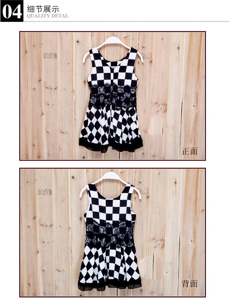 2016新童裙韓版女童夏裝裙子中大童兒童黑白格背心裙童裝一件代發