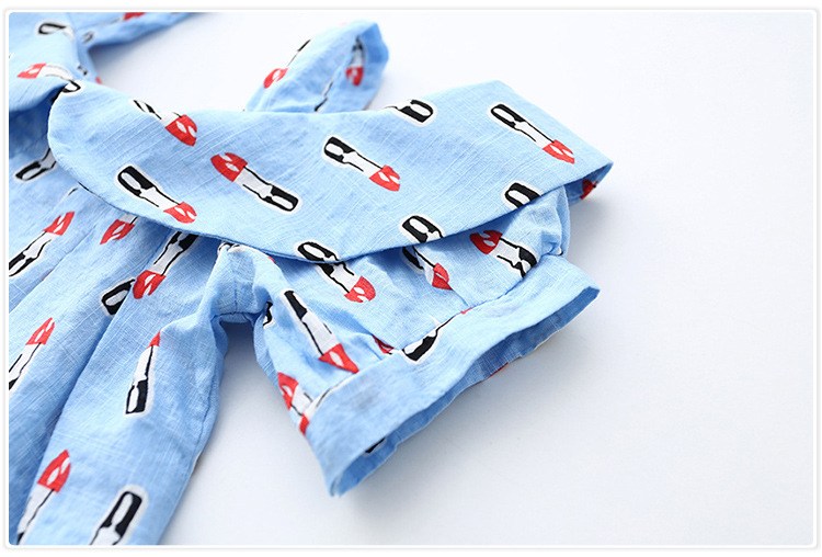 傲貝韓版夏童裝新款女寶寶時尚口紅印花吊帶露肩T恤女童上衣短裙