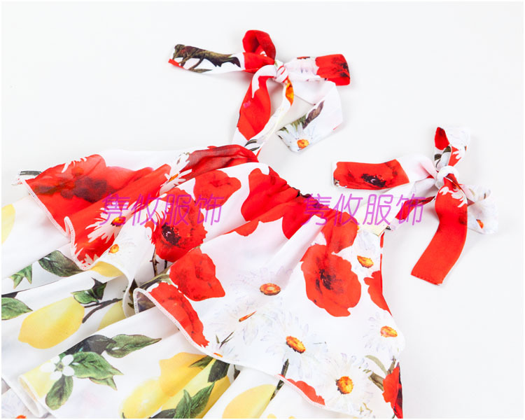 全新亮絲麵料,妖嬈罌粟花和清新檸檬圖案印花,精梳輕質全棉府綢裡佈;完美蛋糕裙,大花邊疊層,本身佈寬吊帶設計;A字裙版型襯裙。
