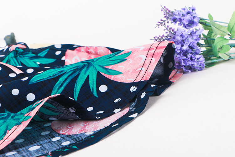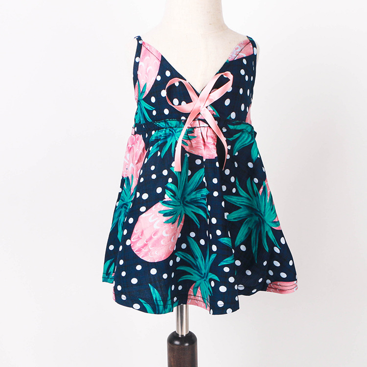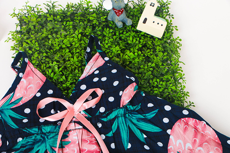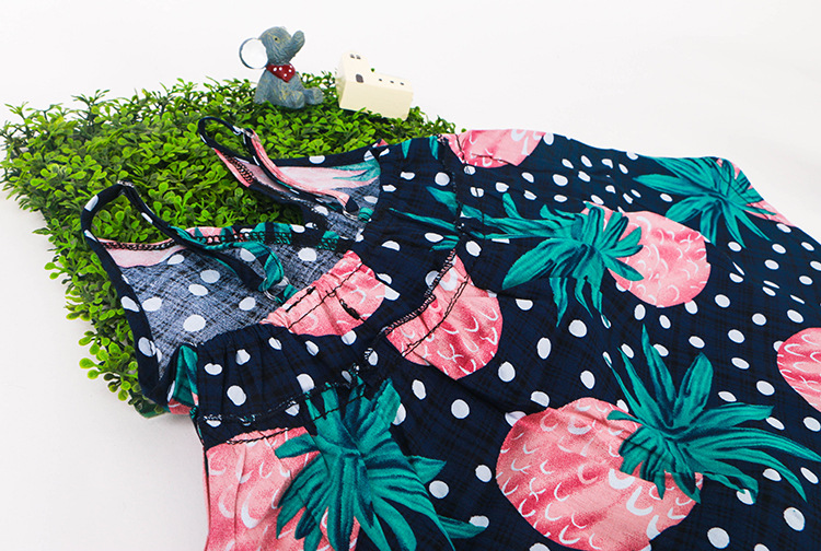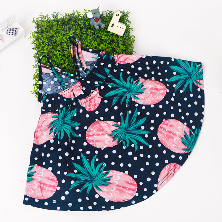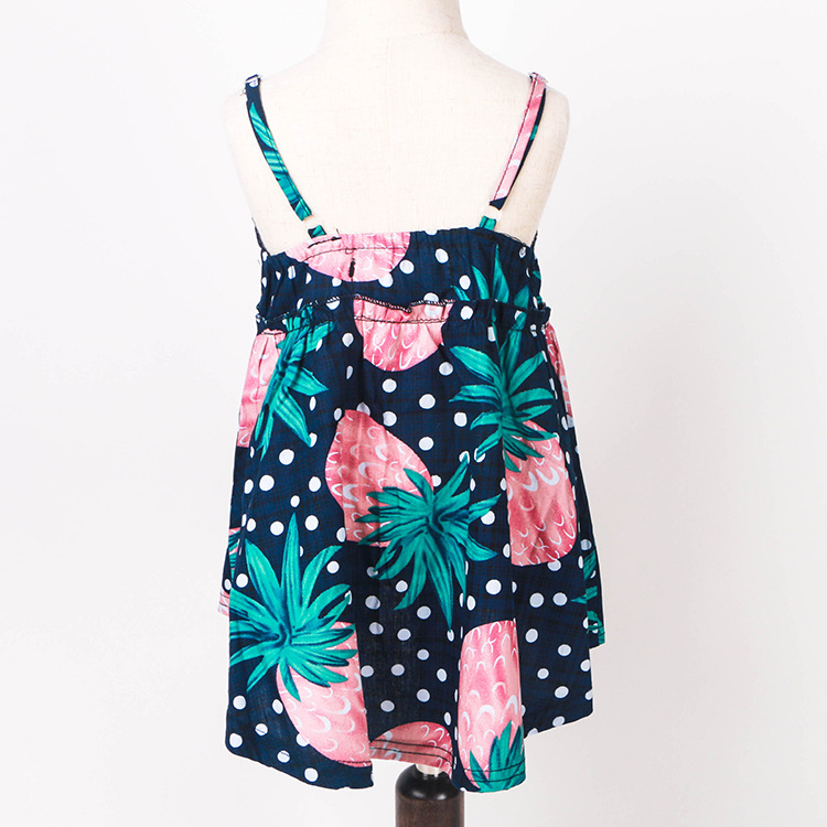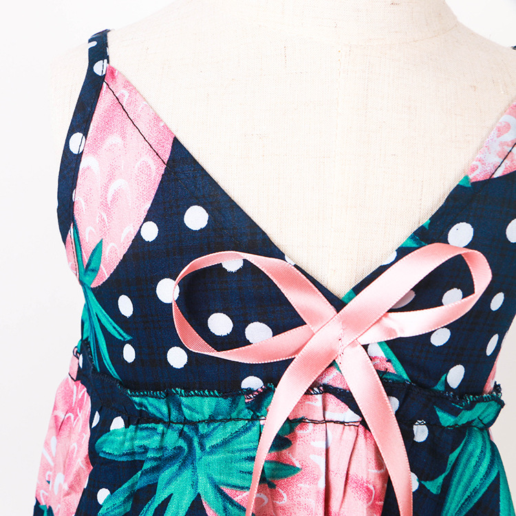 童裙16新款夏季女童菠蘿印花圖案吊帶裙V領背心裙沙灘裙一件代發