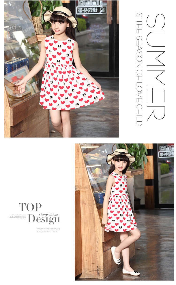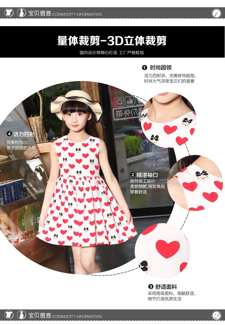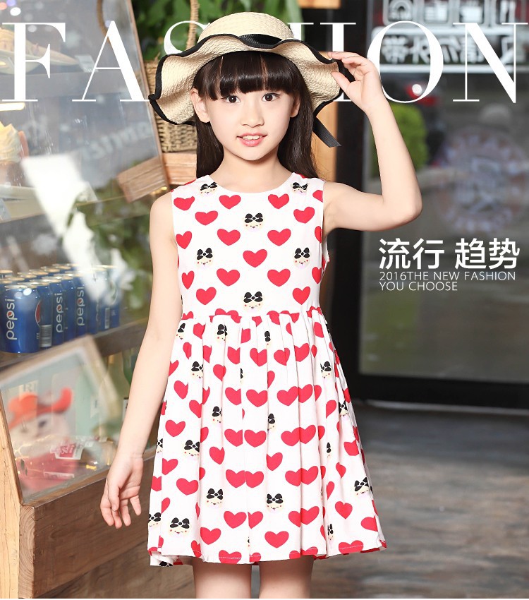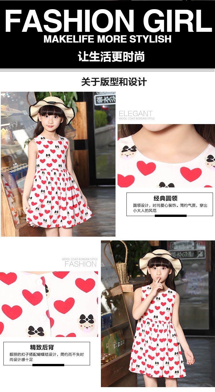 童裝2016新款女童公主裙夏裝兒童連衣裙中大童純棉愛心小裙子