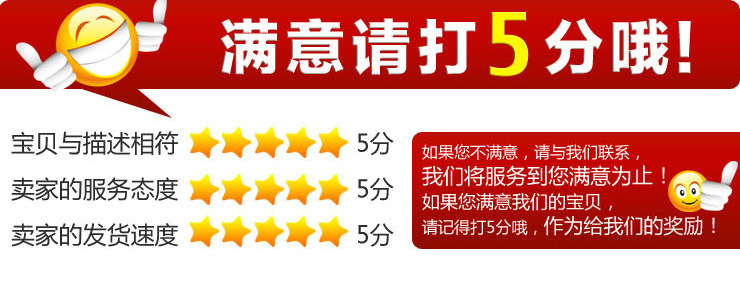 | 批發說明:請先閱讀說明再下單,下單付款後則算認同本店鋪購物流程規則! | 1, 本店由廠方直接包裝出貨,部分款式難免有少許氣味,屬於正常現象,在空氣流通處放置一段時間即可消除,對氣味敏感的親們請慎重哦! 2, 新出廠的衣服,尤其是深色衣服/網紗等類麵料,上麵會有一些浮毛、浮紗,這屬正常現象呢,建議親在洗滌時不要和其他衣服浸泡在一起哦! |  | 關於尺碼 | | 寶貝詳情頁麵已註明尺碼,均為人工測量,因測量工具與測量手法不同,會有3厘米左右的誤差。請您根據平時穿著習慣參考尺碼表及評價詳情自助購物。 |  | 關於顏色 | | 100%實物拍攝,為瞭盡量能讓顏色不出現偏差,我們通過各種方法對顏色進行瞭矯正,而我們專業的作圖顯示器也能保證顏色最大程度上接近真實,但不能保證每位買傢不同的顯示器都不出現色差。 |  | 關於客服 | | 如您的咨詢沒能及時回復,可能是當時咨詢量過大,請親耐心等待,也可能是遇到系統問題,您發出的信息丟失等情況,如時間過長,請您聯系其他亮燈客服咨詢,或者重新登錄旺旺後再咨詢,由此造成的不便還請親見諒。 |  | 關於售後 | 1、以下情況不提供退換貨服務 (1)因個人目的而故意損壞商品的;使用過、試穿/試用後損壞、變形並影響二次銷售;勾紗(長度1公分以下)。 (2)車縫線出現漏針;勾紗(長度1公分以下);鈕扣不牢;扣嘴未剪開;可以清洗的污漬及裁剪畫粉痕跡;線頭;衣服褶皺不平整;不影響整體穿著的瑕疵,如襯裡、邊角等到不明顯處小瑕疵(脫線、踩線稍偏、線頭、小污漬等)。 (3)小色差(不同批次出來的麵料都有適當的色差)。 (4)膠印點點脫落/小色斑(0.5平方公分以下)。 (5)一手裡麵偶爾有重碼,如:網站表明為5-7-9-11-13,實際收到為5-7-7-9-13。 (6)輔料有不同顏色,比如裡料,袖口螺紋,拉鏈等等,輔料都是一批一批生產,所以顏色或者花紋不一樣,不影響衣服實際穿著效果。 (7)麵積不大的小污漬,可以自己清洗掉。 (8)商品抵達簽收後三天內未聯系本公司客服。 2、質量問題產品鑒定 如有大麵積臟污、破損、長短不齊或其他嚴重瑕疵等,均可以瑕疵處理,具體根據買傢提供瑕疵圖片做出相應的售後處理(一般小瑕疵給予相應的折價,無法銷售的明顯瑕疵可做退貨處理)以下幾種情況內均屬質量問題: 1.發貨錯誤:所收到商品款式、顏色與所訂貨物不同,可以聯系我們客服給予更換。 2.大麵積污漬:衣服有超過3CM且不能清洗掉的污漬。 3.大麵積破洞:非人為破洞且直徑大於0.5cm以及非人為脫線超過5cm。 4.一手裡麵全部是同一個尺碼且事先沒有說明的。 寄回要求:所有寄回的運費請客戶自己先行墊付,有很多快遞公司運費到付是加倍的,退換貨的運費由客戶自行承擔,有質量問題寄回產生的運費則我們簽收後會支付寶轉帳給客戶,寄回快遞公可以中通,匯通,韻達中任選一傢,寄其他快遞公司則需聯系客服確認,如果客戶發到付或未經客服確認發其他快遞公司包裹倉庫收貨員會拒簽並原路返回,由此造成損失的由客戶全部承擔。 |  | 關於發貨 | | 本店默認快遞為圓通,支持順風,如要指定快遞者麻煩留言備註說明,無說明者將選擇默認快遞。另外請親們多多理解快遞的不可控製性,也要清楚每個地方快遞員的素質是參差不齊的,不滿意可以投訴快遞員,而不要一味地拿賣傢出氣,給中差評,謝謝! |