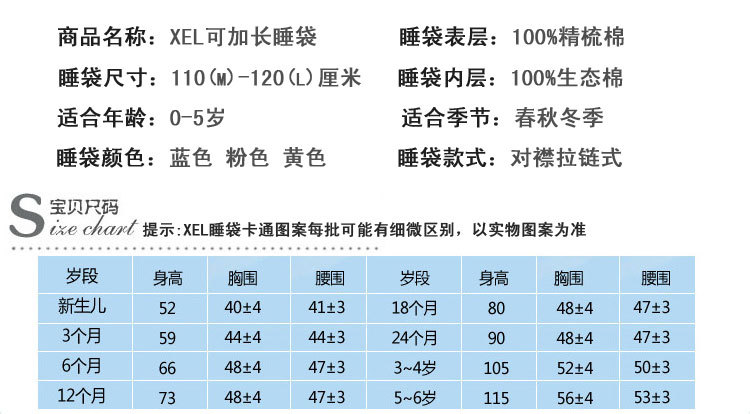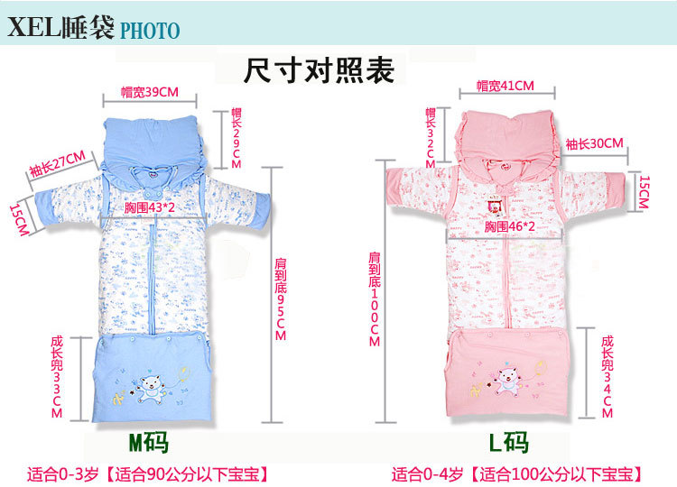 寶寶加厚可加長可拆帽拆袖睡袋