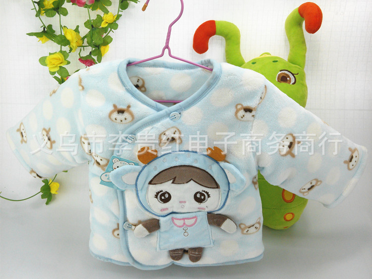 【特點】:富貴唄唄棉服系列質地細膩,采用優質棉織物,此麵料極佳的透氣性、排汗性、清爽的觸感,是嬰兒內衣優選產品,本產品在剪裁和縫製工註重嬰兒體態特點,講究安全性和舒適性,特別註意領口、袖部、腹部、襠處等細節的設計,使嬰兒活動伸展方便、靈活、為寶寶健康生長增添無限樂趣、