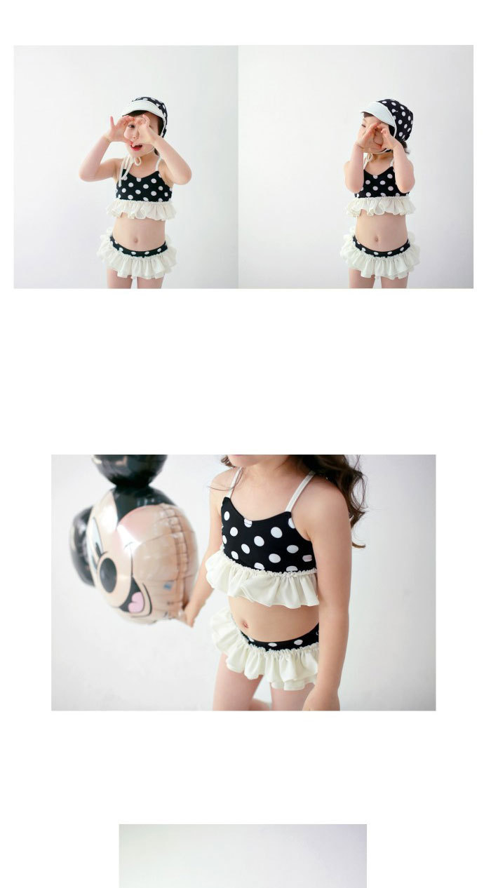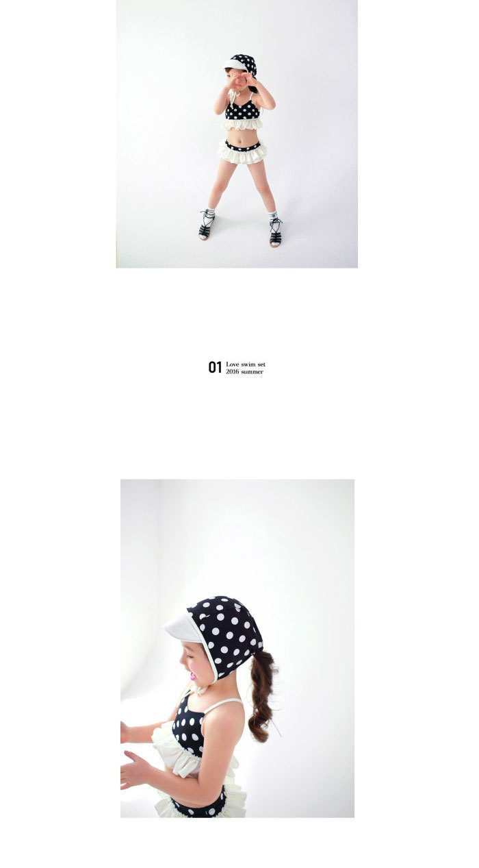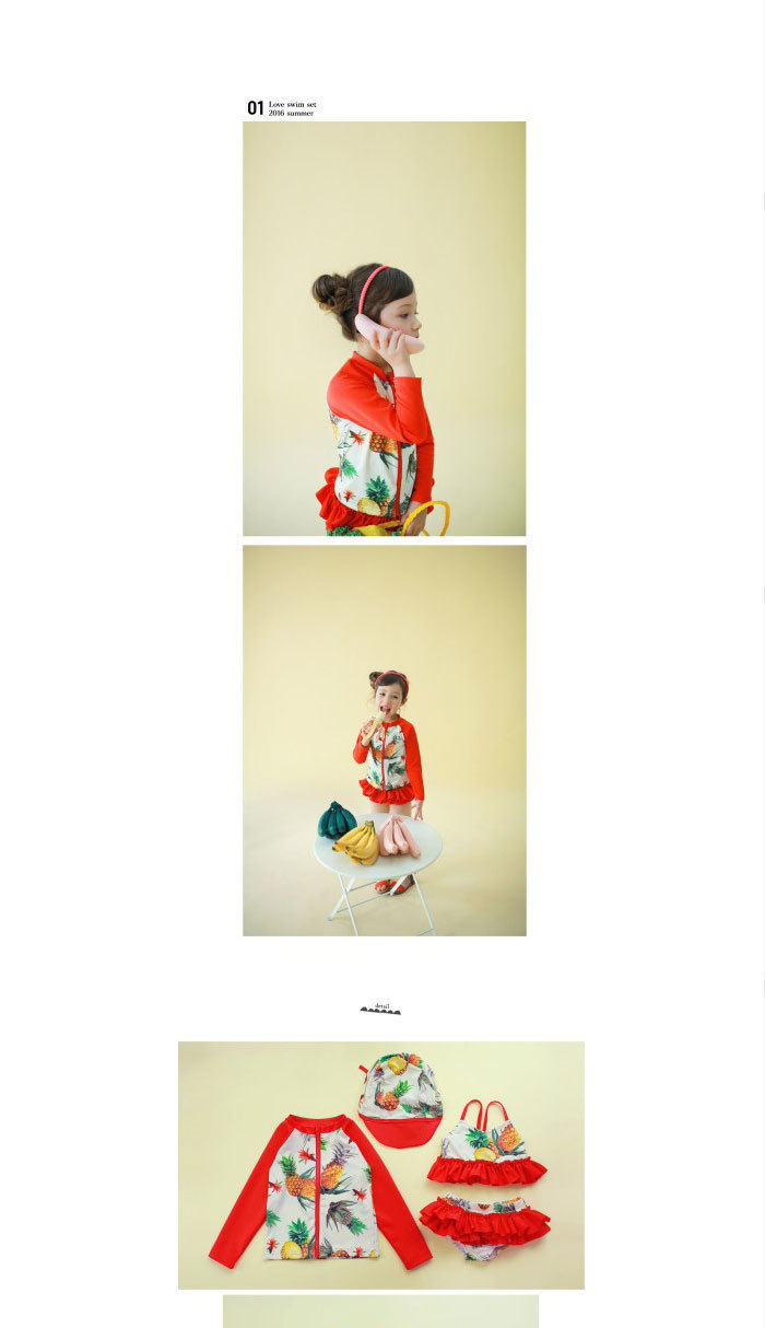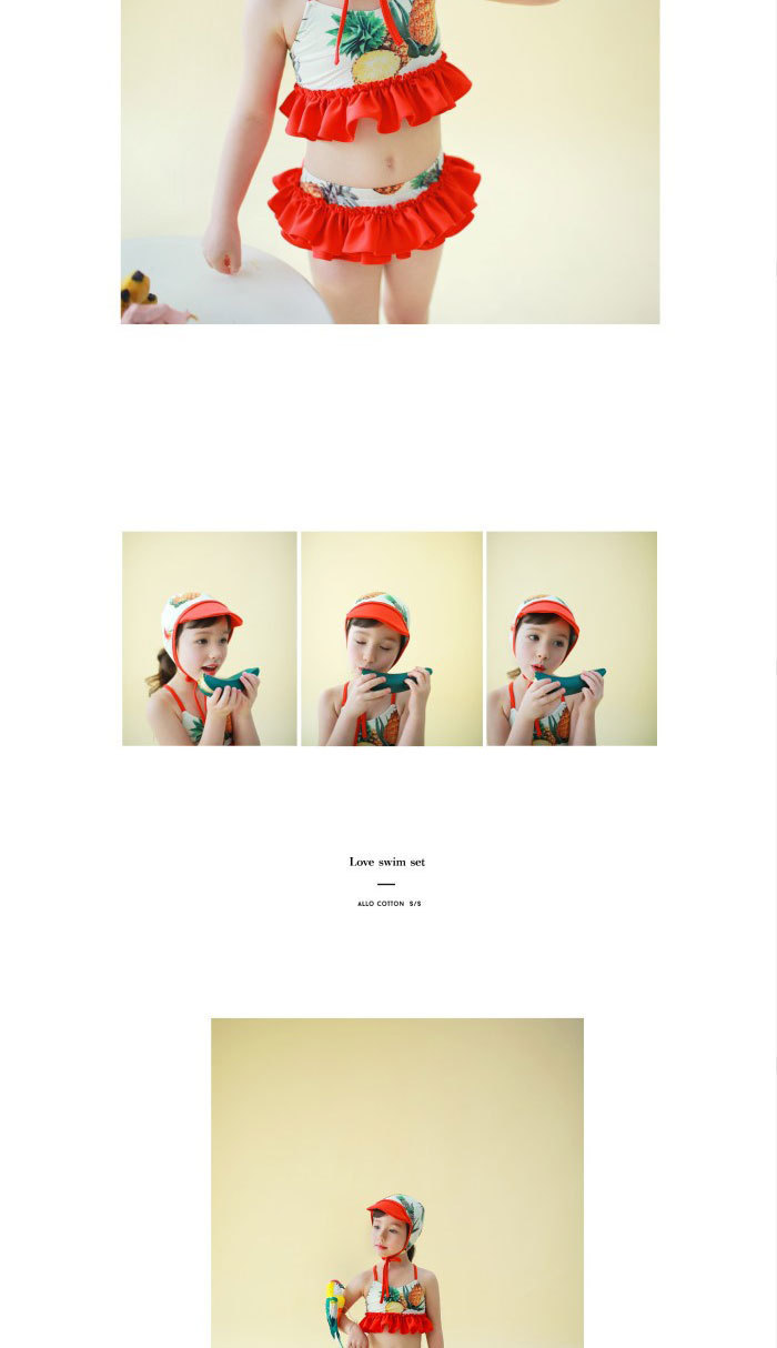 韓國兒童泳衣女童遊泳菠蘿圓點比基尼泳裝寶寶分體泳衣配帽4件套