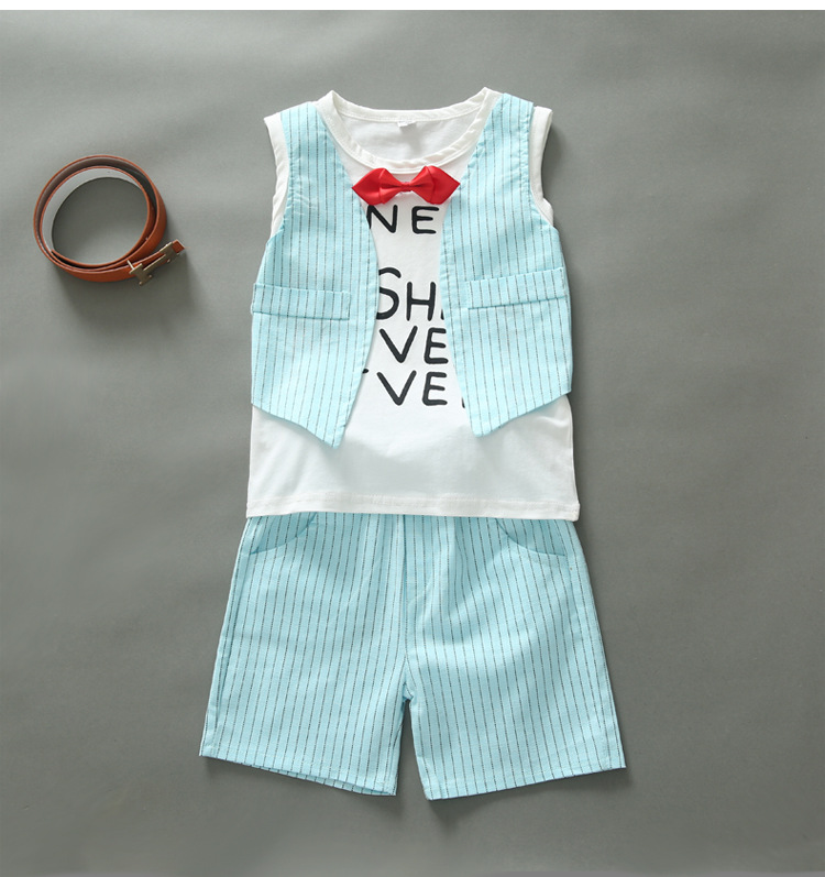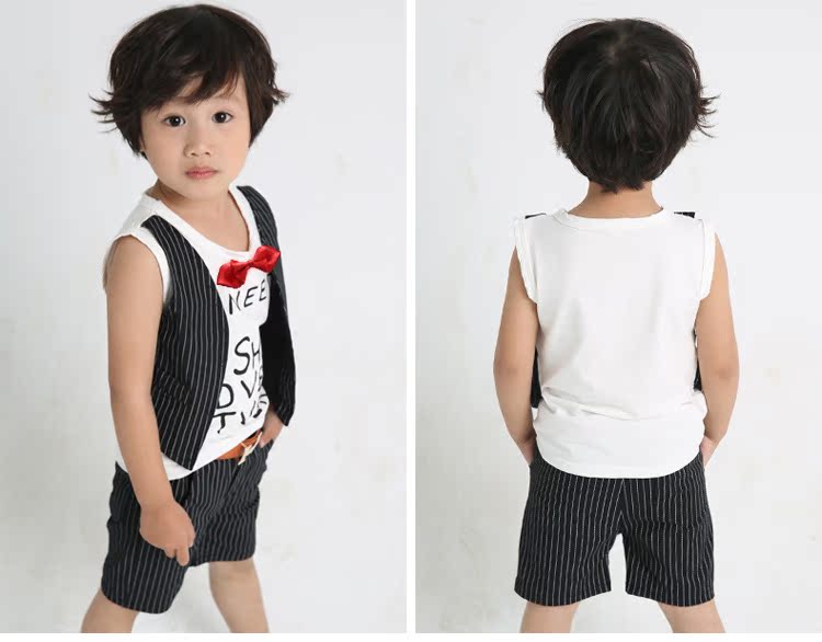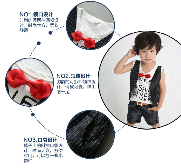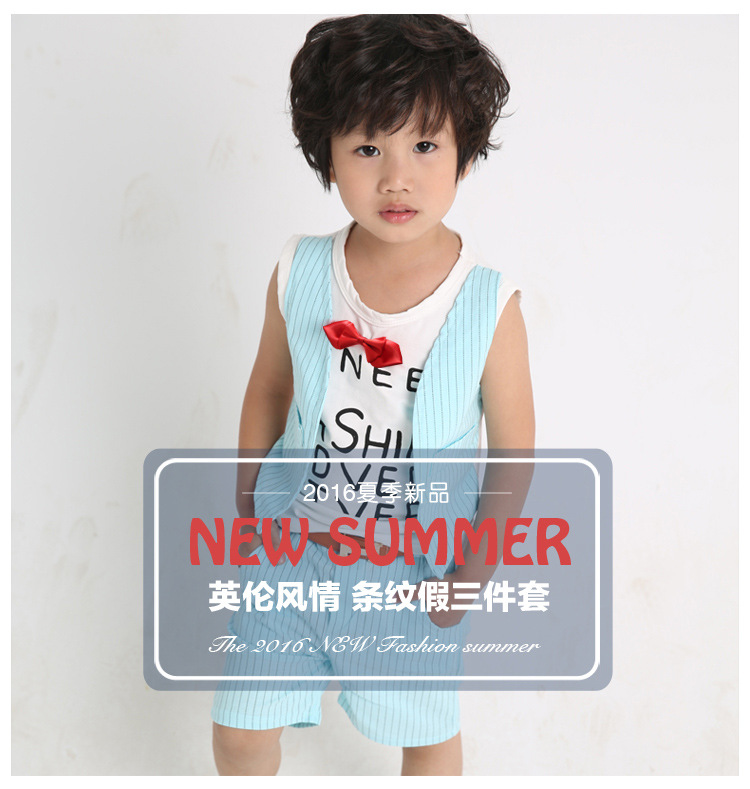 童裝2男童3套裝2016韓版4夏季5時尚6假兩件7背心8歲一件代發