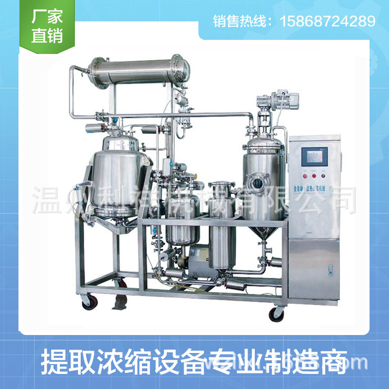 3. 設備功能齊全,適用於水提和醇提,能進行常壓和負壓提取並且可以回收揮發油。配置真空轉換器及控製箱,操作方便,可實現常溫提取低溫濃縮;常溫提取常溫濃縮;低溫提取低溫濃縮等工藝要求。
