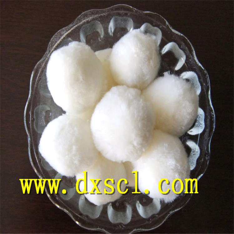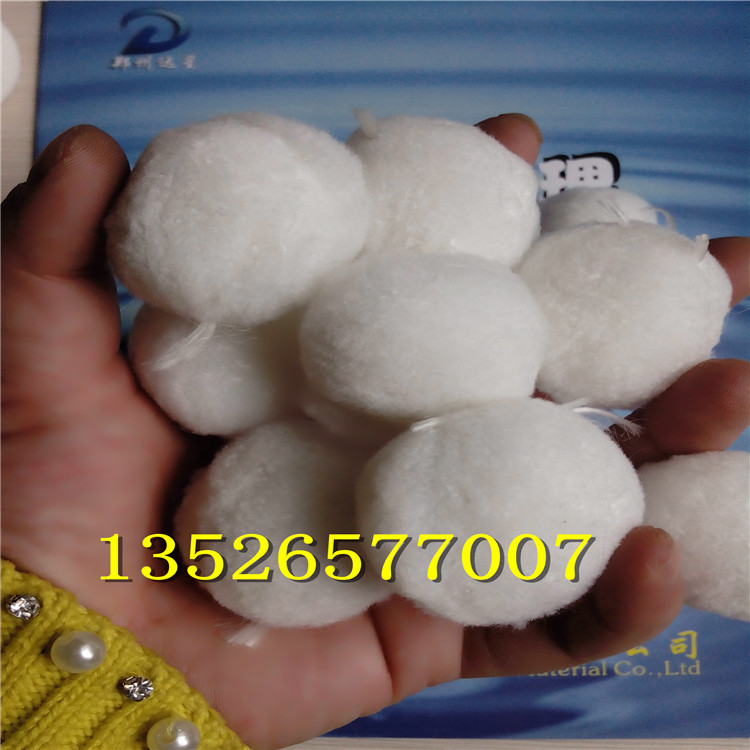 纖維球濾料是由纖維絲紮結而成,它與傳統的鋼絲顆粒濾料不同,具有彈性效果好,不上浮水麵,孔隙大,工作周期長,水頭損失小等優點。在過濾過程中,濾層孔隙沿水流方向逐漸變小,比較符合理想濾料由上大下小的孔隙分佈結構,具有效率高,濾速快,比傳統砂濾料高3.5倍,截污容量大,過濾效果好,可將不易沉淀去除的微小懸浮物截留,可再生,用氣水反沖洗,沖洗水量為過濾水量的1-2%,適應於各種水質的過濾。
