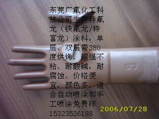 1 特氟龍(鐵氟龍、特富龍)塗料單層、兩層,需要380度烘烤型塗料、顏色豐富多種,表麵光潔靚麗,價格便宜.