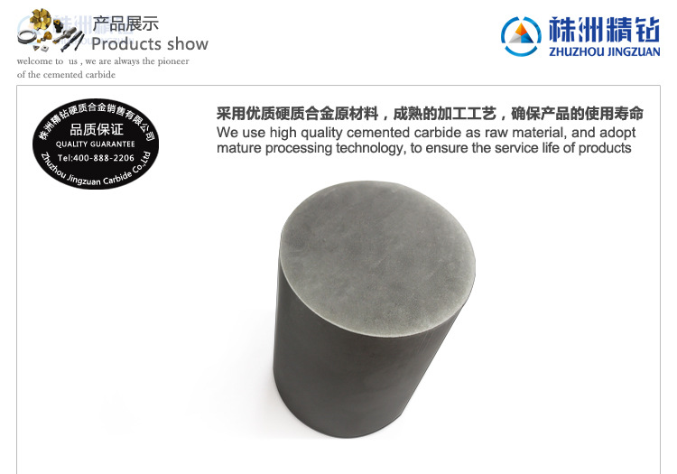 YG15 | 13.9-14.2 | ≥86.5 | ≥2060 | 適於高壓縮率下鋼鋼棒和鋼管拉伸, 在較大應力下工作的頂錘、穿孔及沖壓工具 |