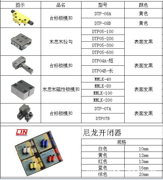 輕型拉鉤包含型號:標準型 一般接拉細水口板 A型 有虛位勾咀,先開模後拉板, L型 加長勾咀,跨越推扳