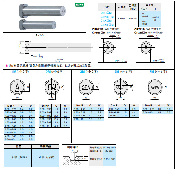 刻印直型芯(凹字刻印型)CPH口M/CPHB口M/CPX口M/CPXB口M_塑料模具配件_模具_機械設備_貨源_批發一路發