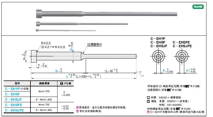 高速鋼SKH51+硬質鍍鉻頂針C-EHYF/C-EHSF/C-EHSJF/C-EHSFE/C-EHSJ_塑料模具配件_模具_機械設備_貨源_批發一路發
